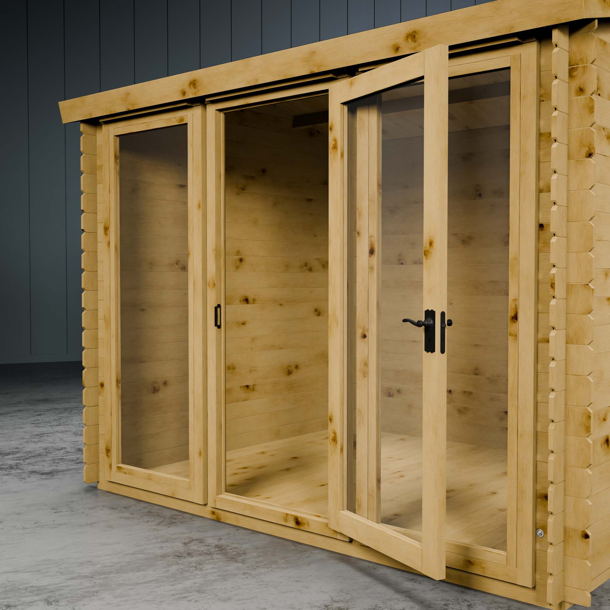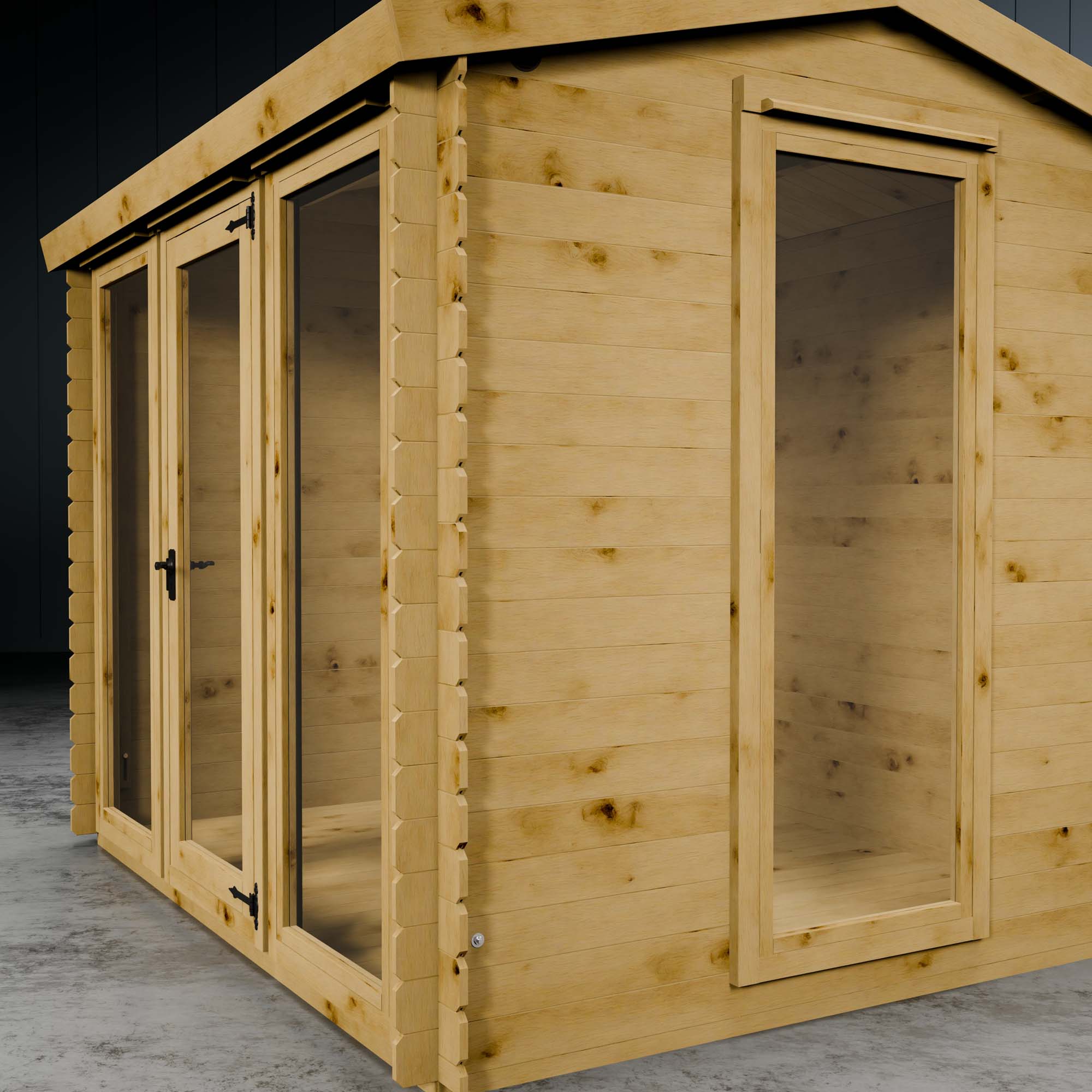 The Value Apex Log Cabin creates the perfect way to make the most of your garden, while in the comfort of the indoors. This elegant and stylish garden building is ideal for those who want to enjoy their garden and the summer weather while being shaded from the sun. Featuring floor-to-ceiling windows to the front and the side, this building floods with an abundance of light and air, and becomes a vibrant and inviting space for you to enjoy.