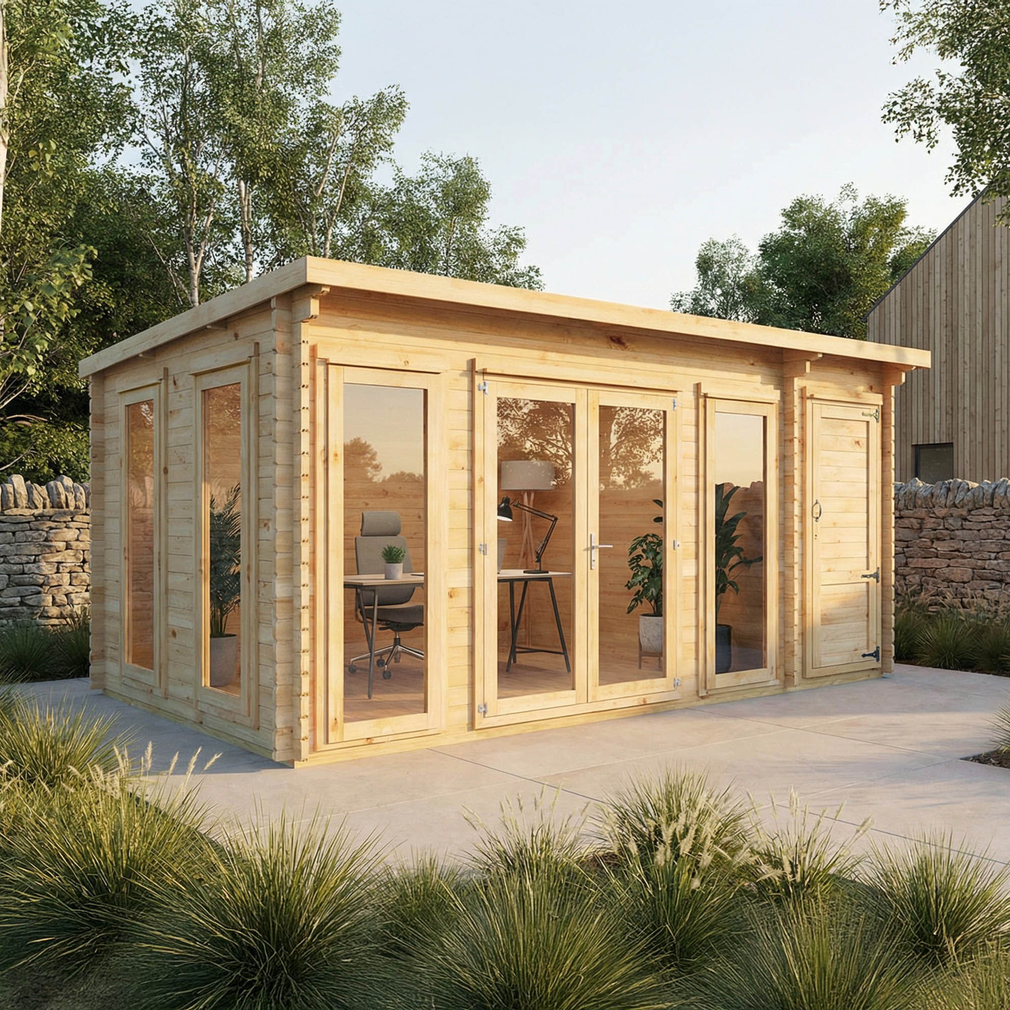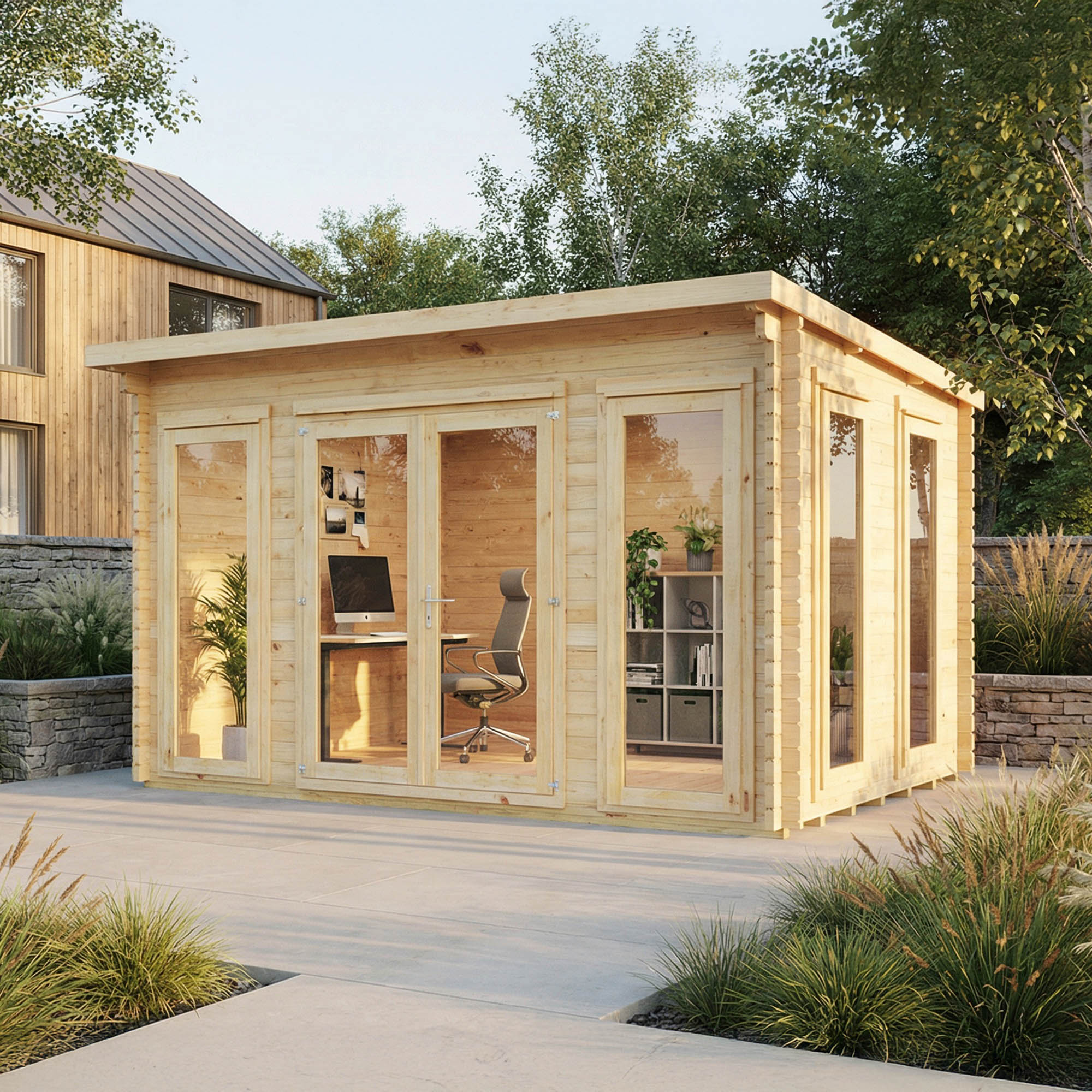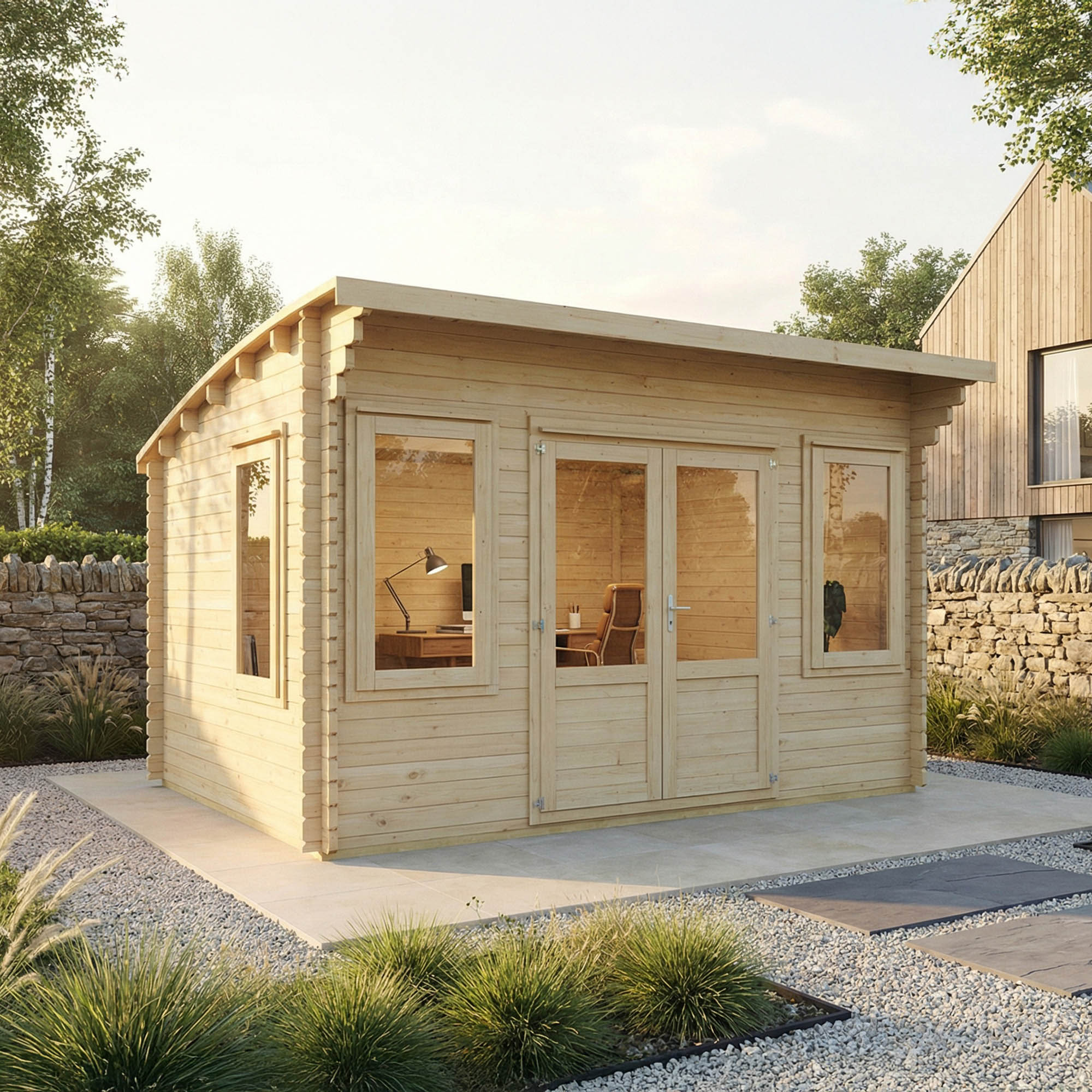 Summer houses are the ideal solution for those wanting to connect with their garden through the warmer months of the year. If you want to extend the enjoyment into late autumn and winter, a log cabin gives you an even longer season. Just add low-maintenance UPVC windows and doors (in white, anthracite, and oak) to make it even more cosy. Make best use of your outside space and keep your garden tidy by choosing a hideaway with a side shed. You can never have too much additional storage space!