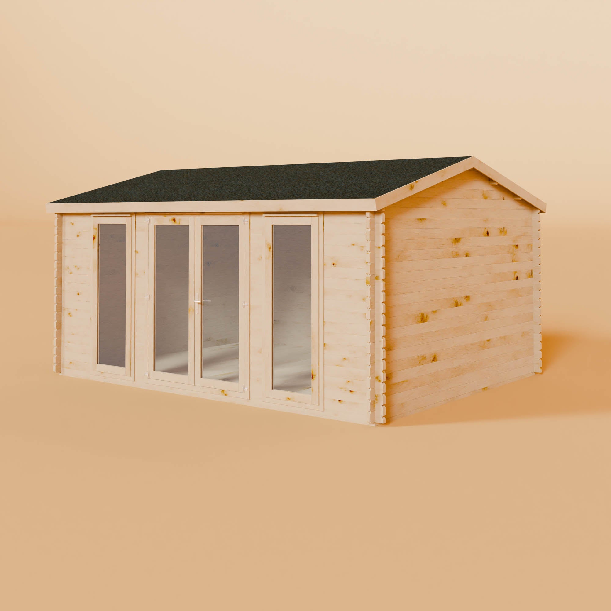 Alternatively, our double-skinned insulated log cabins are available with 72mm double-skinned walls, all the way up to 100mm.