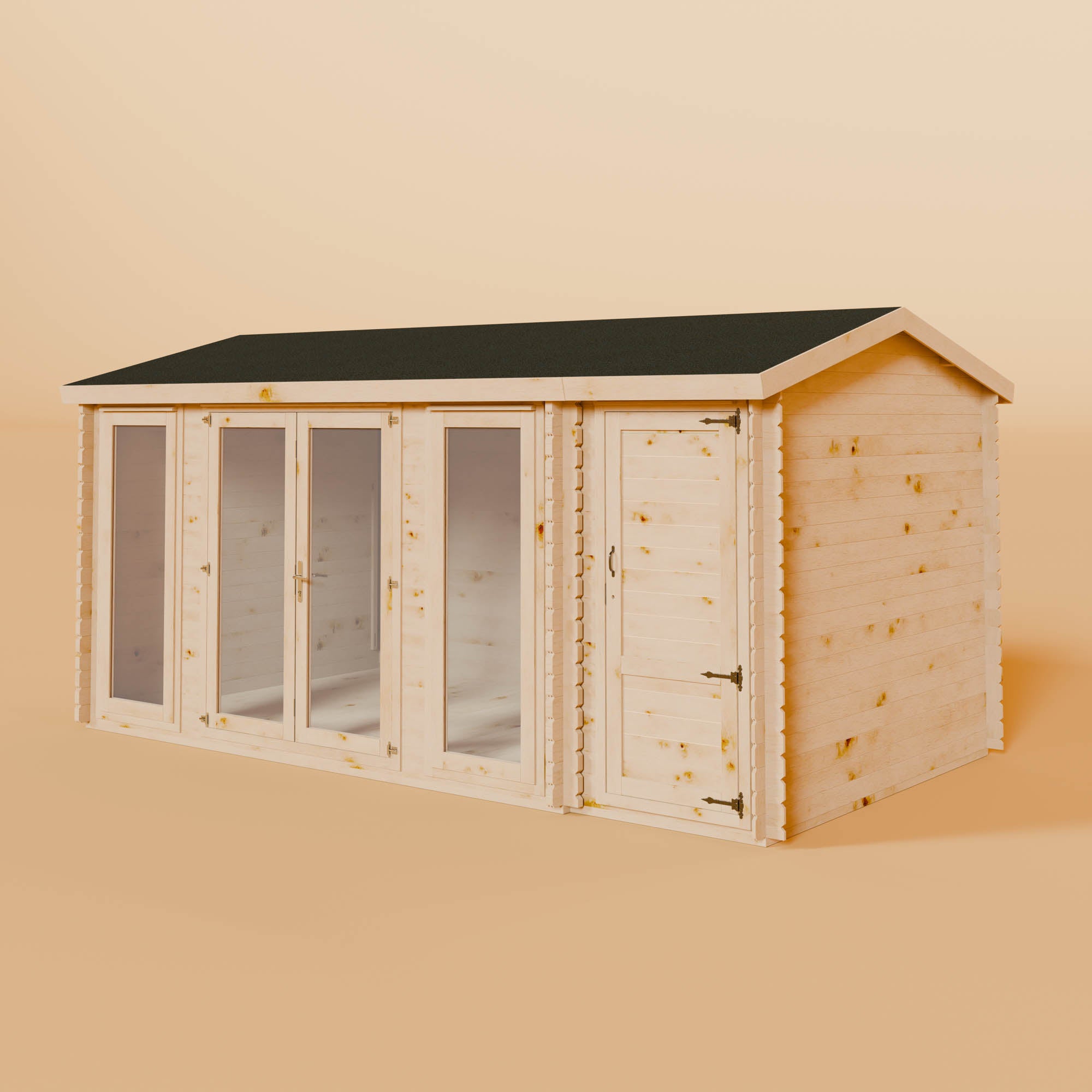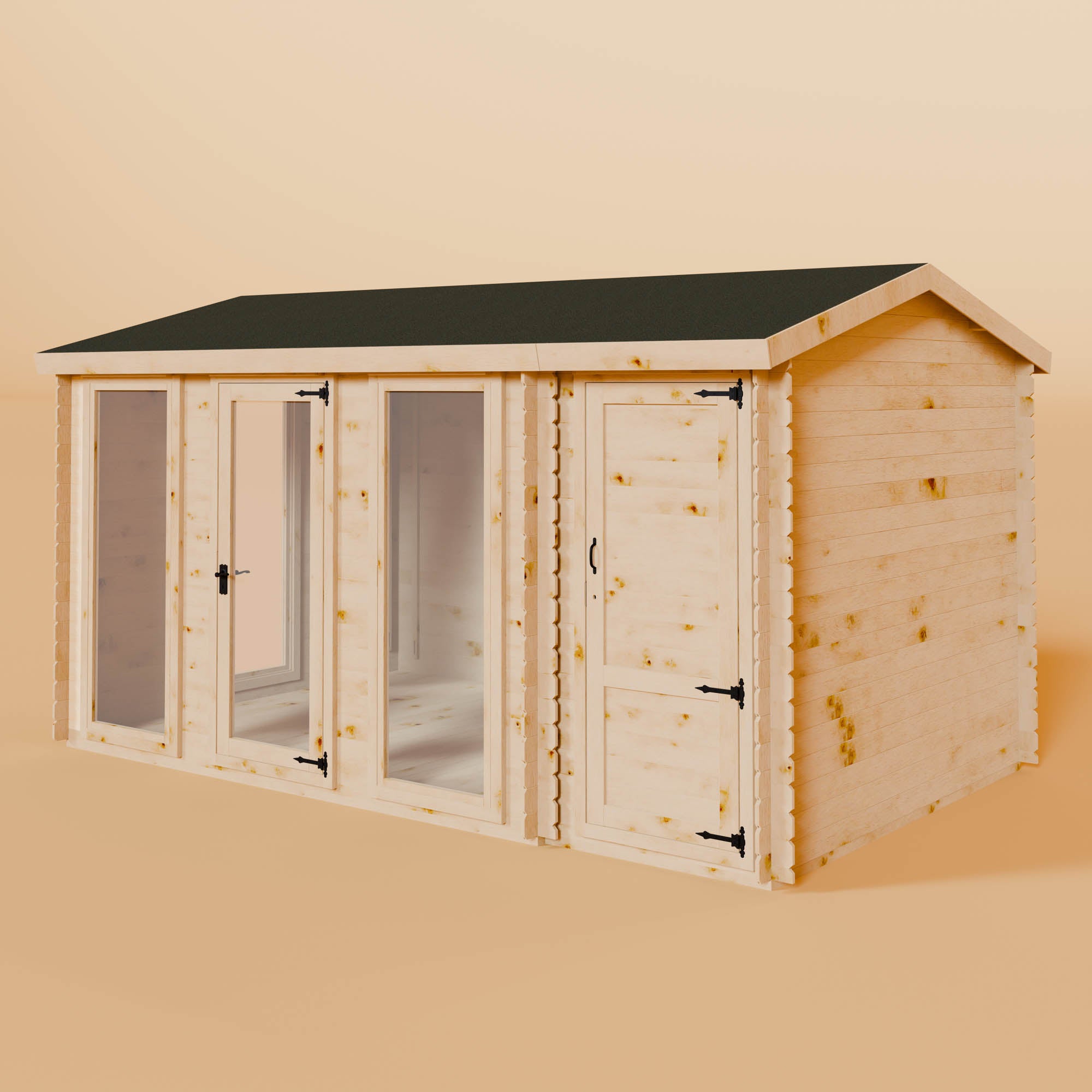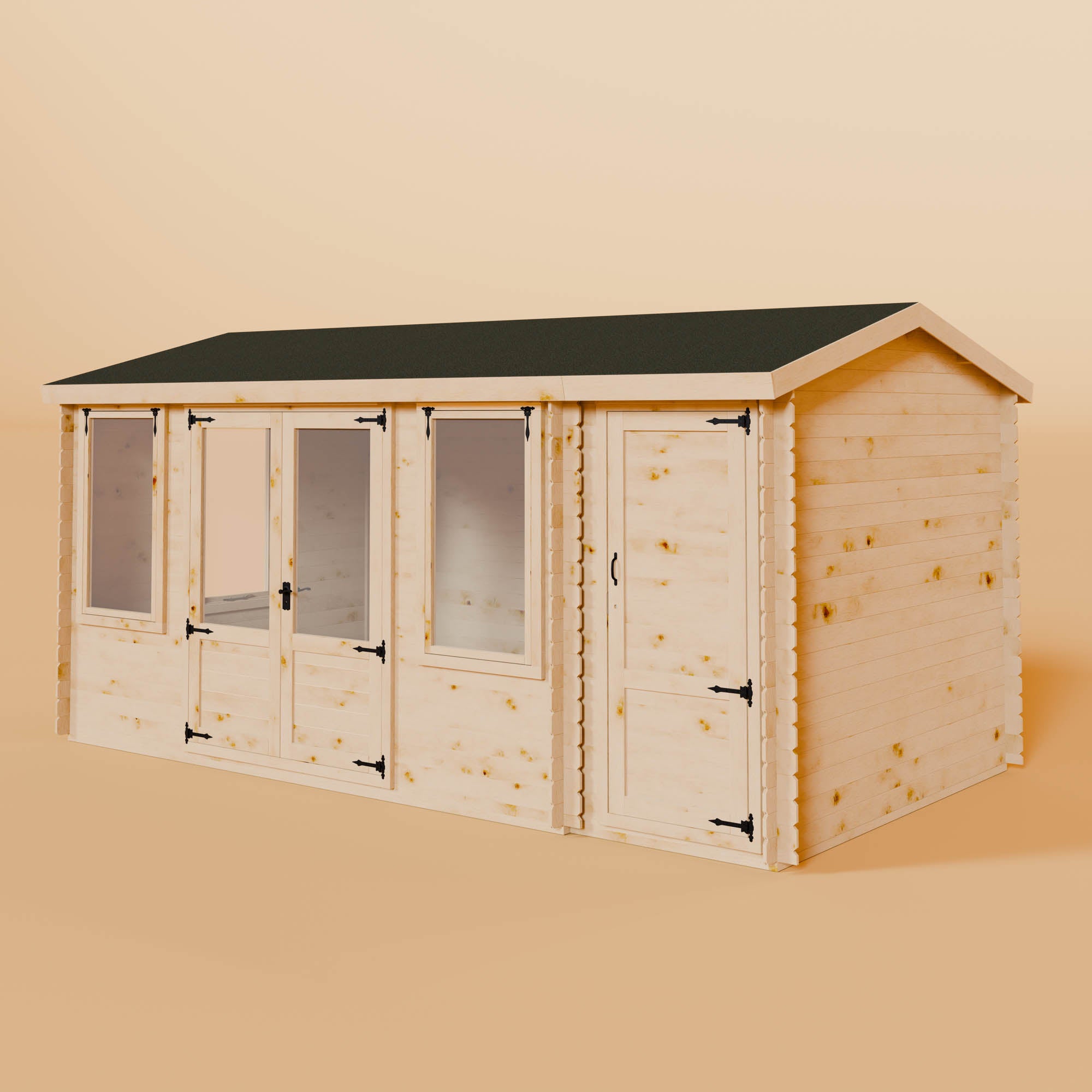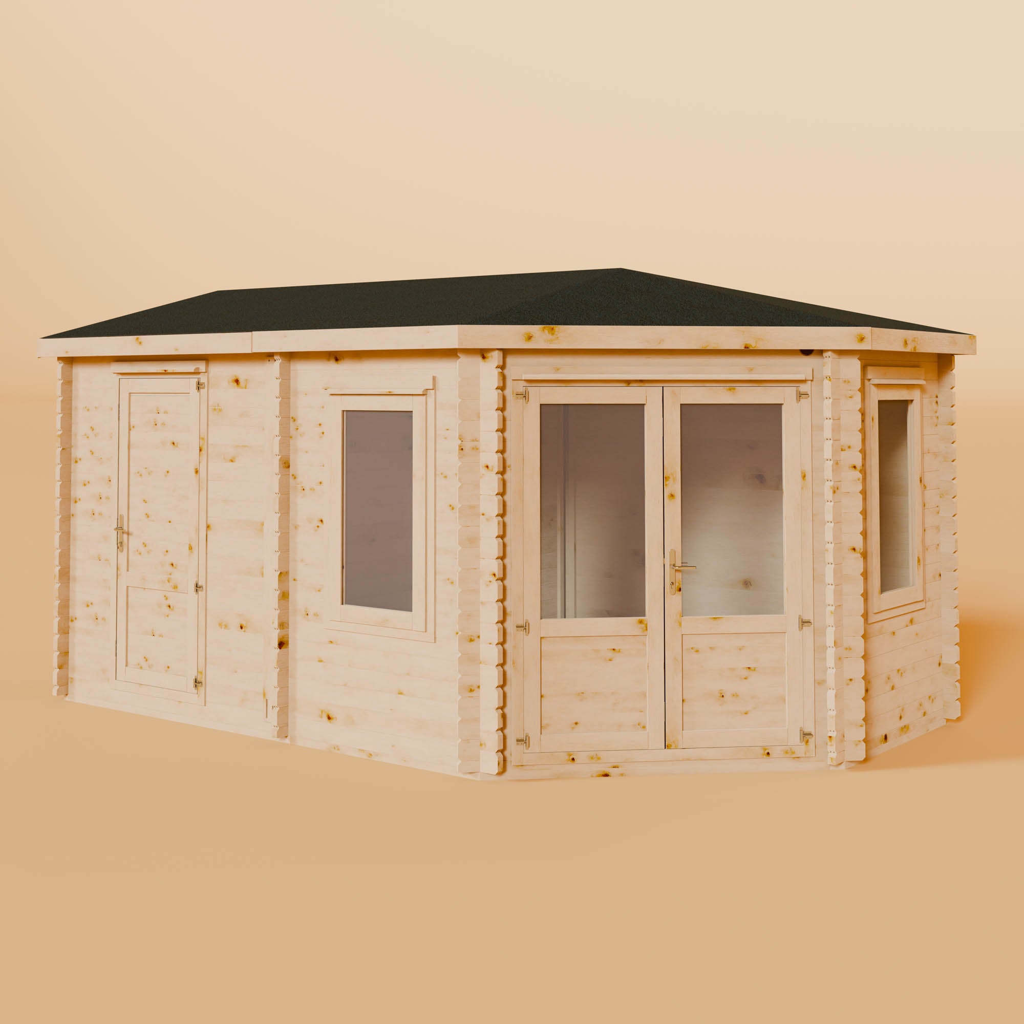 A great way to make the best use of your garden space, a corner log cabin offers a light and airy space with dual-aspect windows and half-glazed double doors. Offering views of your whole garden, corner log cabins have lots of floor space, making them ideal for a wide variety of uses, including outdoor dining, a home gym, a games room, and much more.