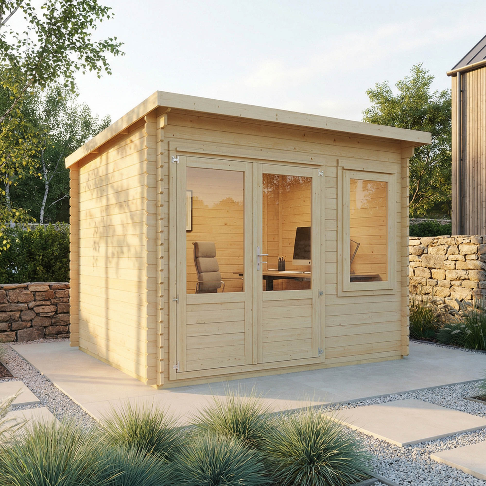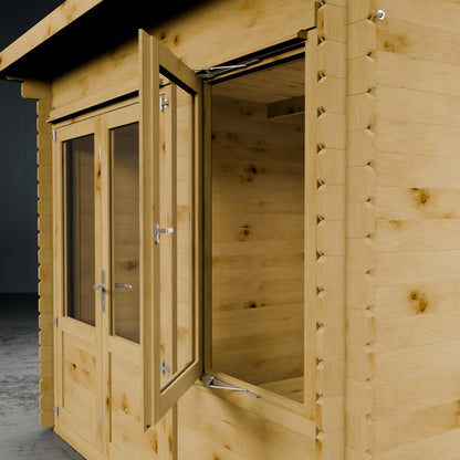 The Log Cabin is a versatile and multi-functional structure, ideal for various purposes. Whether you envision it as a hobby room, reading space, or simply a place to unwind while relishing the views of your garden, it caters to diverse needs. Ample room allows for comfortable seating, coffee tables, or even a small dining set, making it an excellent space for entertaining guests. Alternatively, if you require a home office or a hobby room during the warmer months, the cabin is equipped with heavy-duty flooring for accommodating substantial equipment and boasts a bright and airy interior, creating an optimal working environment.