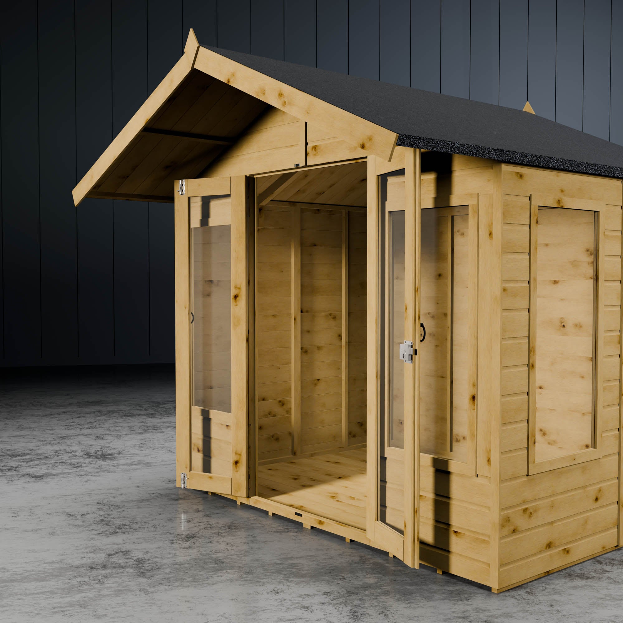 This summerhouse is supplied untreated and will require a coat of high quality timber treatment once installed then annually after that. You can simply add this into your basket as an additional extra and we’ll deliver it alongside your new retreat, so you’re ready to go.