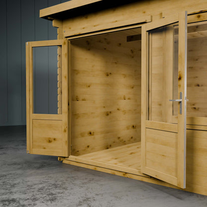 Featuring double glass doors and an additional window, the Cuckoo provides a cosy haven to relax while basking in the surrounding scenery. The inclusion of refined ironmongery, both internally and externally, imbues your new garden retreat with a timeless sense of elegance.