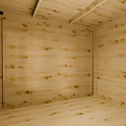 Crafted with meticulous attention to detail, this modern log cabin is constructed from premium 28mm Baltic pine log boards, intricately interlocked to form robust and resilient panels. The interlocking design guarantees a weather-resistant and heat-retaining structure, enabling enjoyment throughout the seasons. Its roof and floor are fashioned from sturdy tongue and groove boards, ensuring long-lasting durability. High-quality roofing felt is provided for weatherproofing, while an integrated vent promotes airflow, reducing moisture build-up and enhancing ventilation. Finally, contemporary yet timeless ironmongery provides a stylish finishing touch to both the interior and exterior of your new garden escape.
