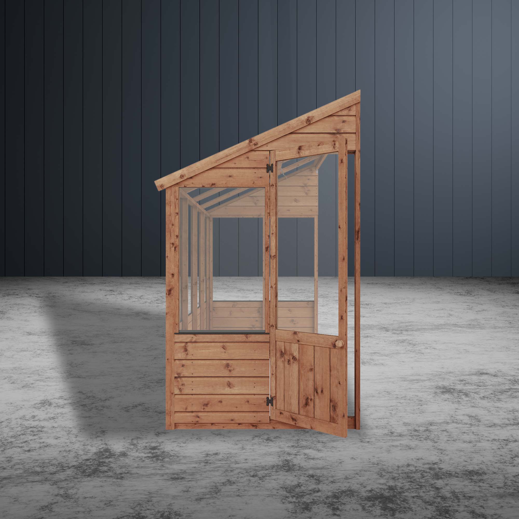 Our 8 x 4 Evesham Lean-to Pent Wooden Greenhouse is a space saving design that simply attaches to the side of a permanent wall. This greenhouse is great for smaller or more urban gardens looking for somewhere to grow a range of plants and flowers throughout the year.