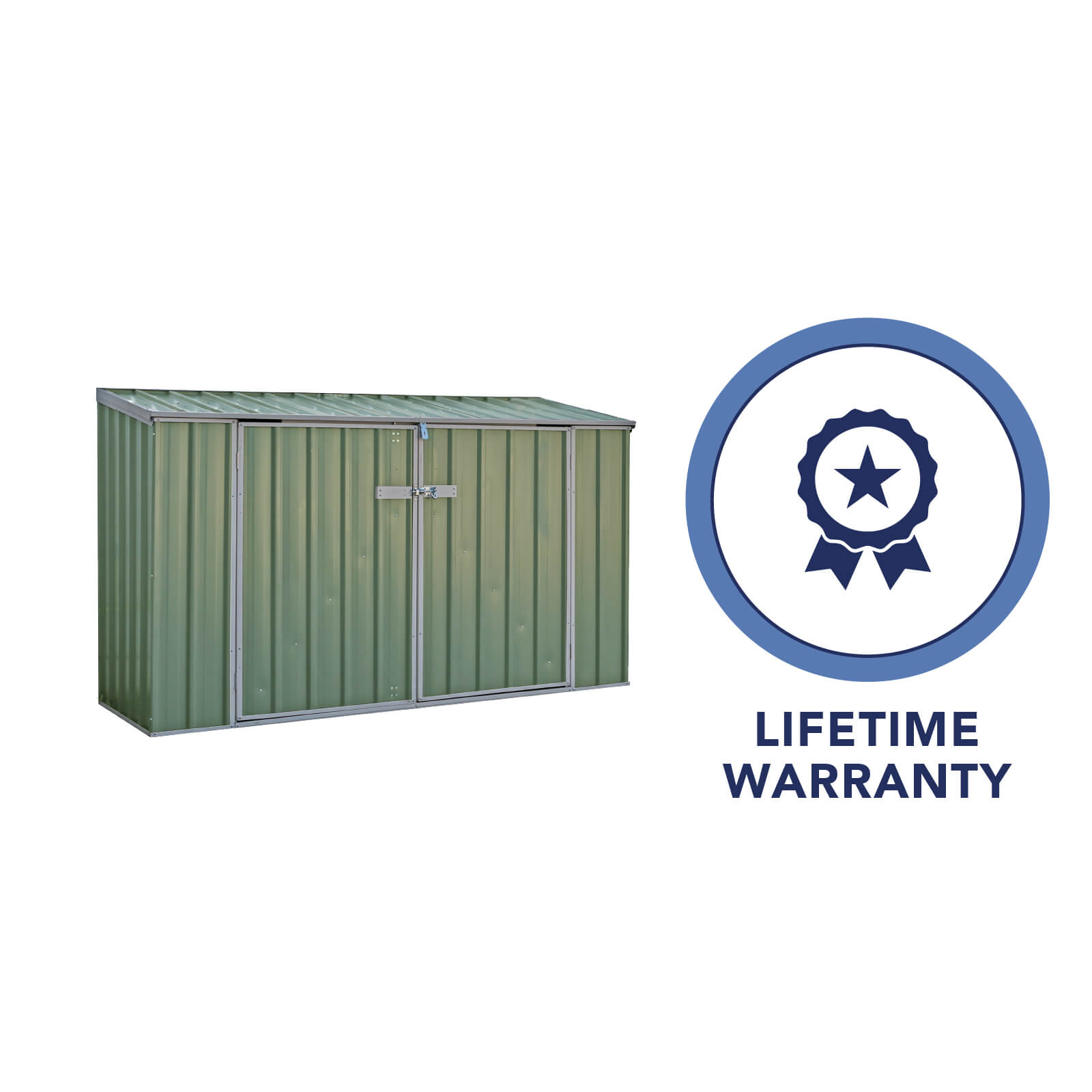 This Absco 7 x 3 Bike Store is the ideal storage solution for your bicycles or smaller outdoor equipment. The doubled hinged doors and skillion roof offer easy access to your belongings. It's compact size makes this the perfect storage option for those areas where space is at a premium. Manufactured in Australia from preassembled metal panels that fit together using a new revolutionary constructions system, Snap-Tite, for a quick and straight-forward construction. This metal shed is made from ultra-tough Bluescope Steel, a strong and hardwearing metal. The steel is then coated with a pale eucalyptus colourbond finish paint which helps enhance the durability of this shed and also makes this shed very low maintenance; the steel used in this shed is also very strong and is treated so it is resistant to rust and water damage. The Absco bike store also comes with a 20 year warranty as standard, testament to Absco's confidence in the product's longevity.