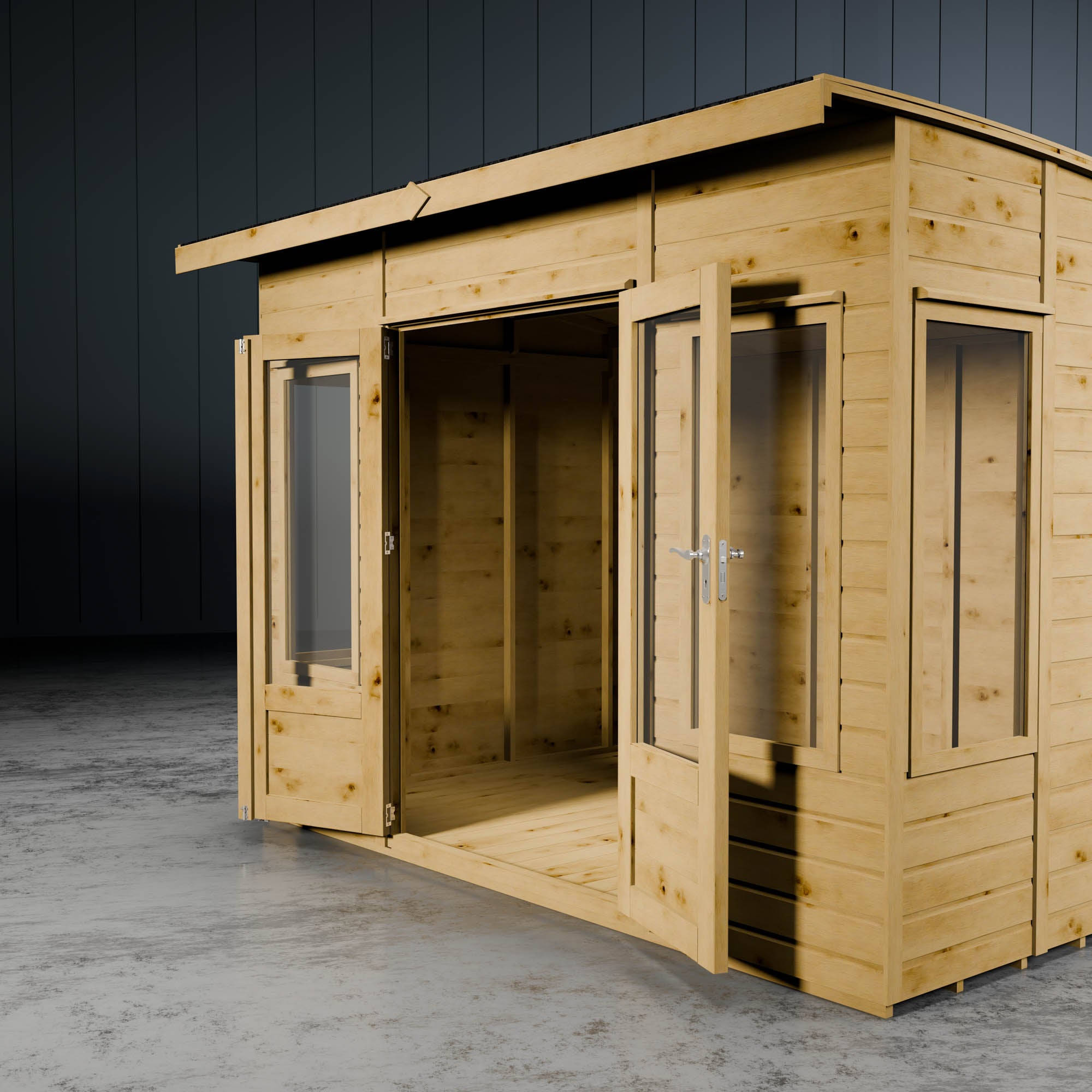 Whether you desire the spaciousness of an apex roof, the sleek profile of a pent roof, or the cosy allure of a wrap-around veranda, our modern summerhouses provide contemporary design without breaking the bank. Additionally, we provide a range of optional extras, including various finishes in striking colours to suit your personality to ensure your garden building stands out whilst matching your outdoor space. If you seek a timber garden building with timeless appeal, our summerhouses offer style and substance at an affordable cost.