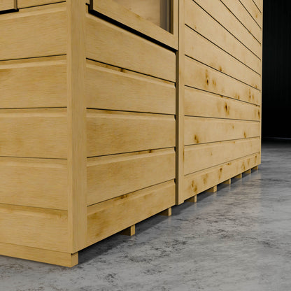 The walls are constructed using 12mm Shiplap tongue and groove cladding to form strong, hardwearing and premium panels. The roof and floor are cut from quality tongue and groove boards. The roof is covered with heavy duty mineral felt for added weatherproof protection.
