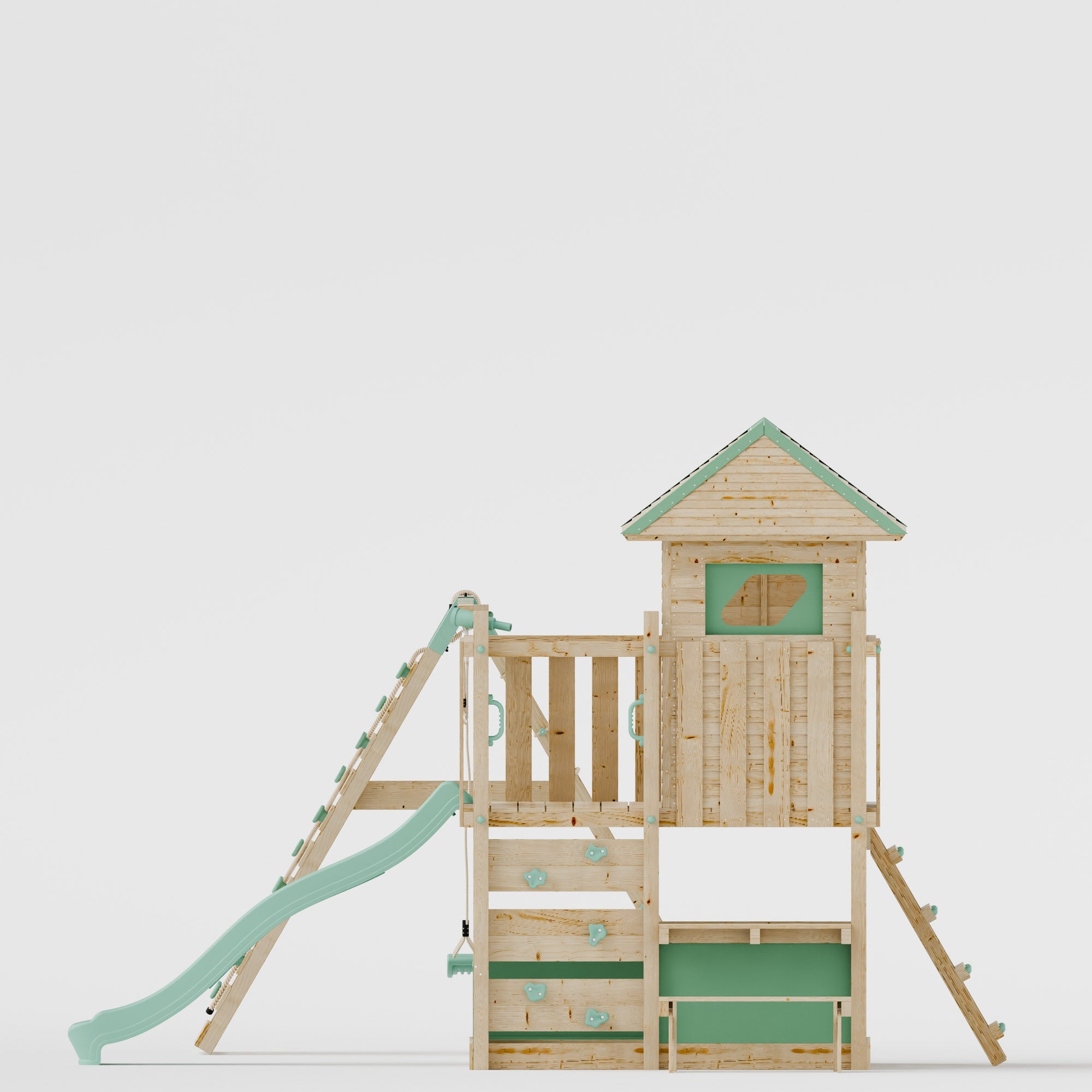 Watch as your kids safely explore a new outdoor adventure, from the safety of their home and the security of the LittleSummit. With moulded rock climbing grips, regular safety handles and a tower platform surrounded by natural wooden railings you can rest easy while your children enjoy hours of outdoor enjoyment.