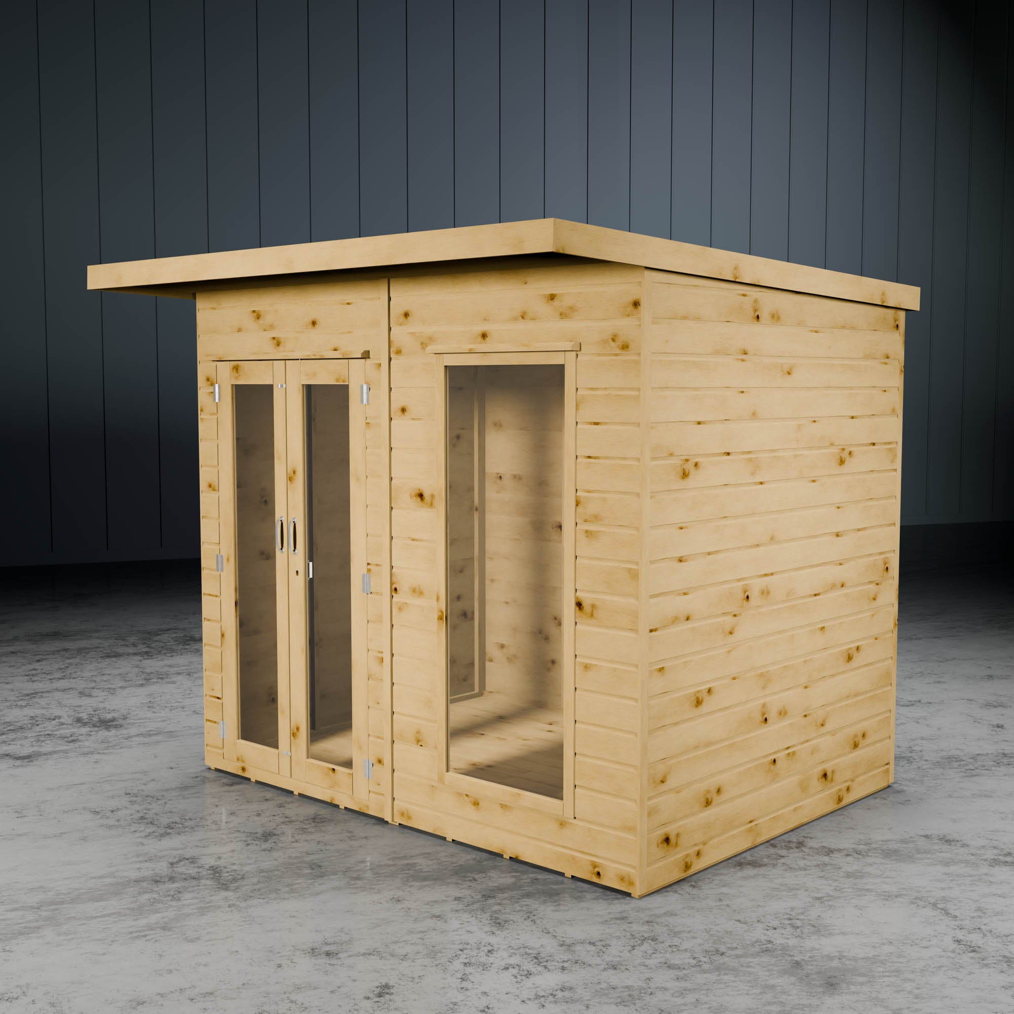 This stylish pent design is perfect for those looking for a place to entertain guests, or as a hobby or craft room. Perhaps you’re in need of somewhere to relax with a cup of tea and a good book? Fill the space with comfy chairs, a coffee table and some indoor plants to create the perfect garden retreat!