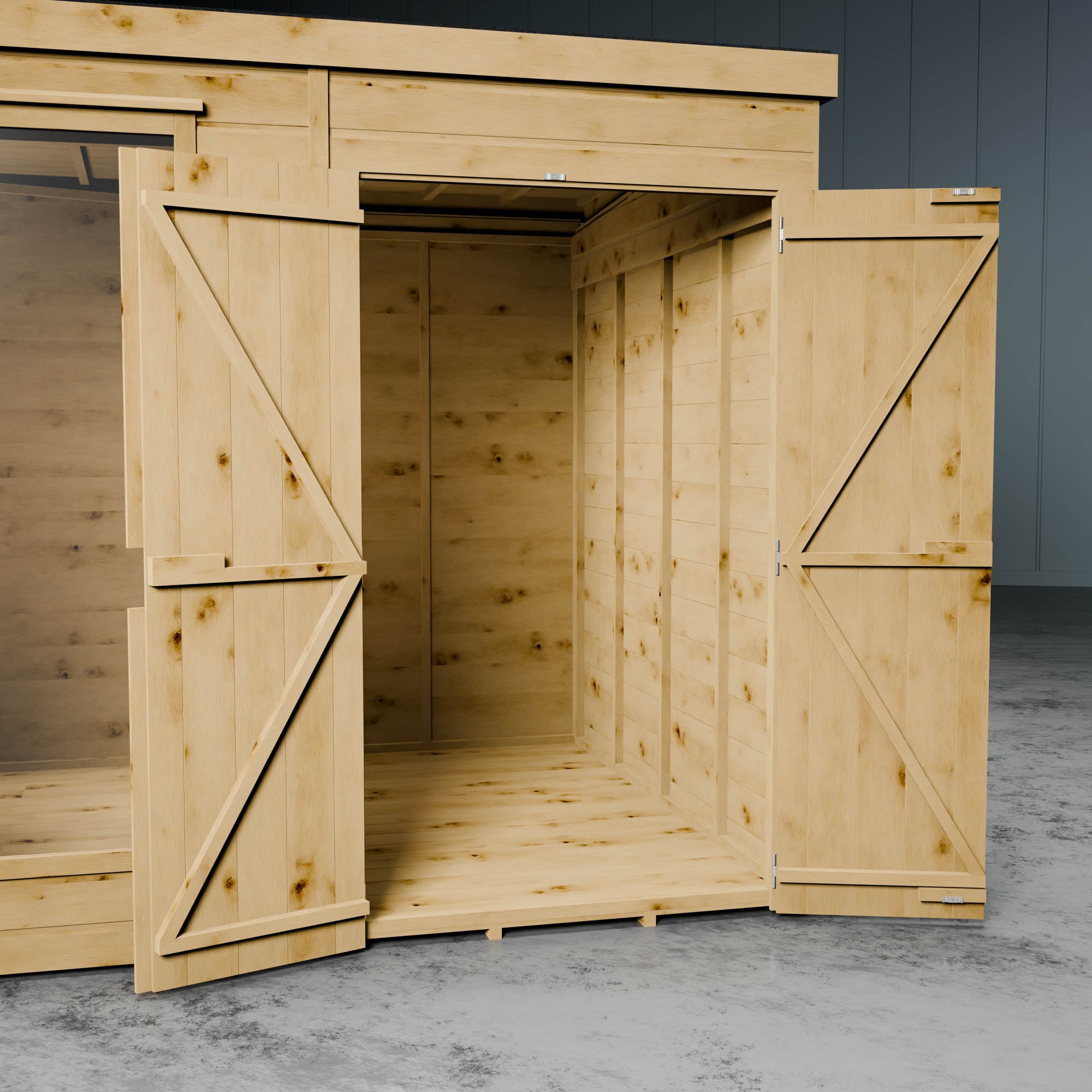 An attached side shed is the perfect way to get unwanted clutter out of your garden, so you can sit back and enjoy the view of your neat and tidy outdoor space from the comfort of your new summerhouse. The side shed is modular and can therefore be placed on either side of the summerhouse to suit your space.