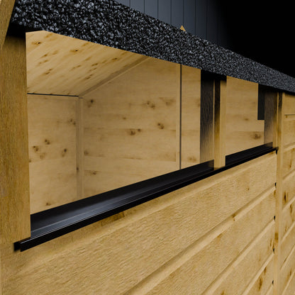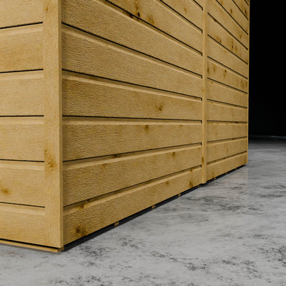 Shiplap cladding consists of multiple boards of timber which create a flush panel. Shiplap cladding features a recess at the top of the individual boards which helps water run-off, offering protection against the elements. Not only is shiplap cladding watertight like overlap cladding, but it also has the added benefit of being airtight, meaning belongings are much less at the risk of draughts and dampness. This means shiplap sheds are an ideal choice if you intend on spending time in your shed, as a workshop for example, or are planning to store items that could not risk coming into contact with any moisture. Another added benefit is its aesthetically pleasing smooth exterior, coupled with smooth interior panels, creating a high standard of finish both on the inside and outside of the building. This gives a more premium feel to your garden.