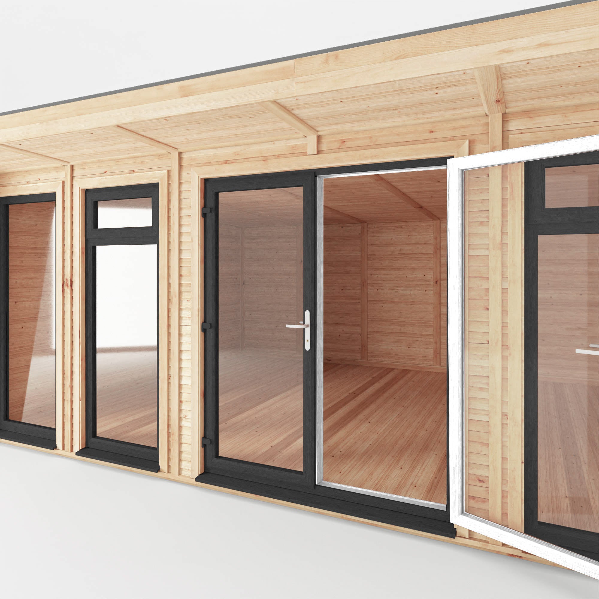 Add an additional full length UPVC modular window in anthracite finish to your new garden building. Its modular design means it can be located in any position on the building. Buying this would replace one of the plain panels. It is 14mm thick argon filled double glazed unit.
