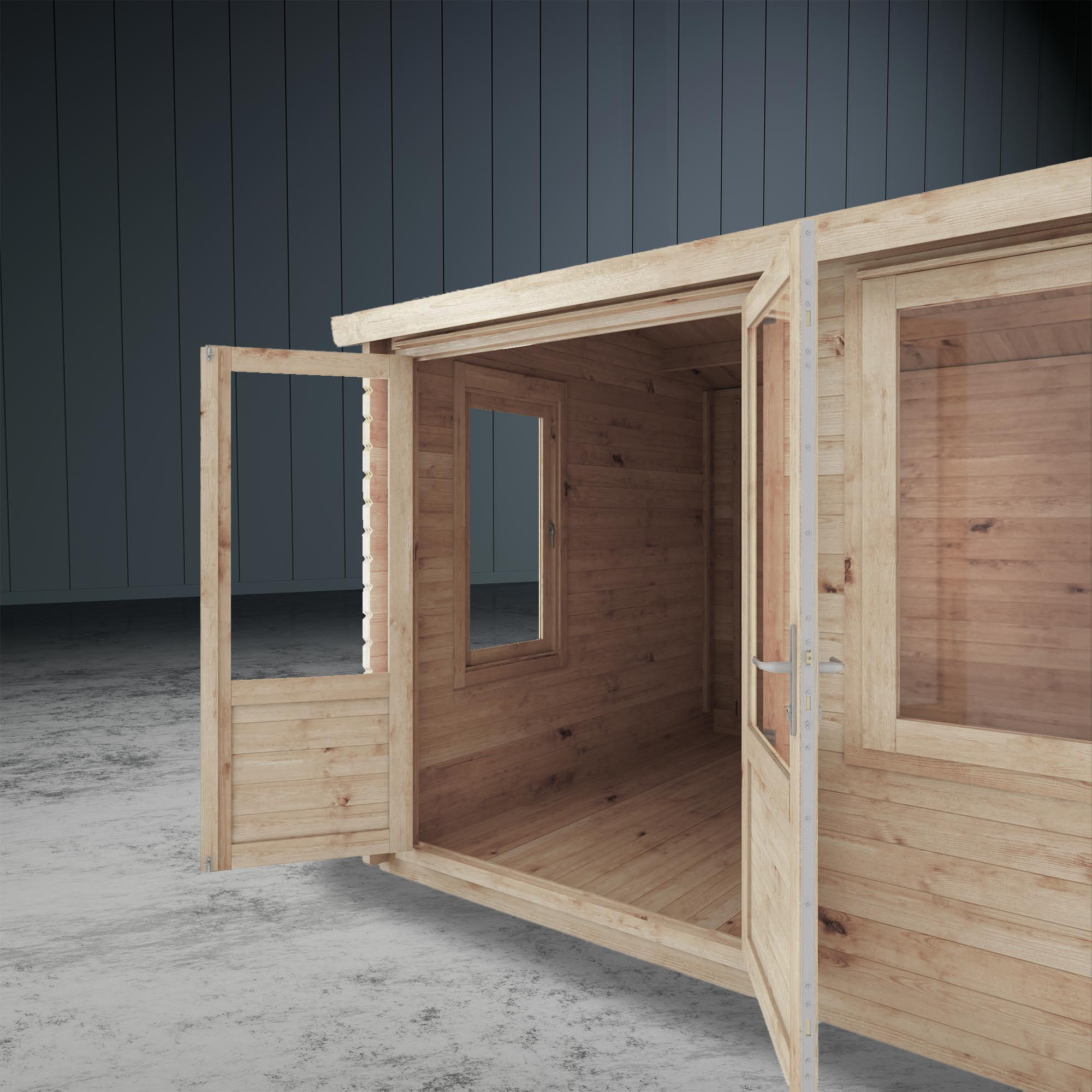 If you fancy upgrading this cabin and taking it to the next level, the Robin log cabin is also available with UPVC doors and windows. Choose from Anthracite, White or Oak.