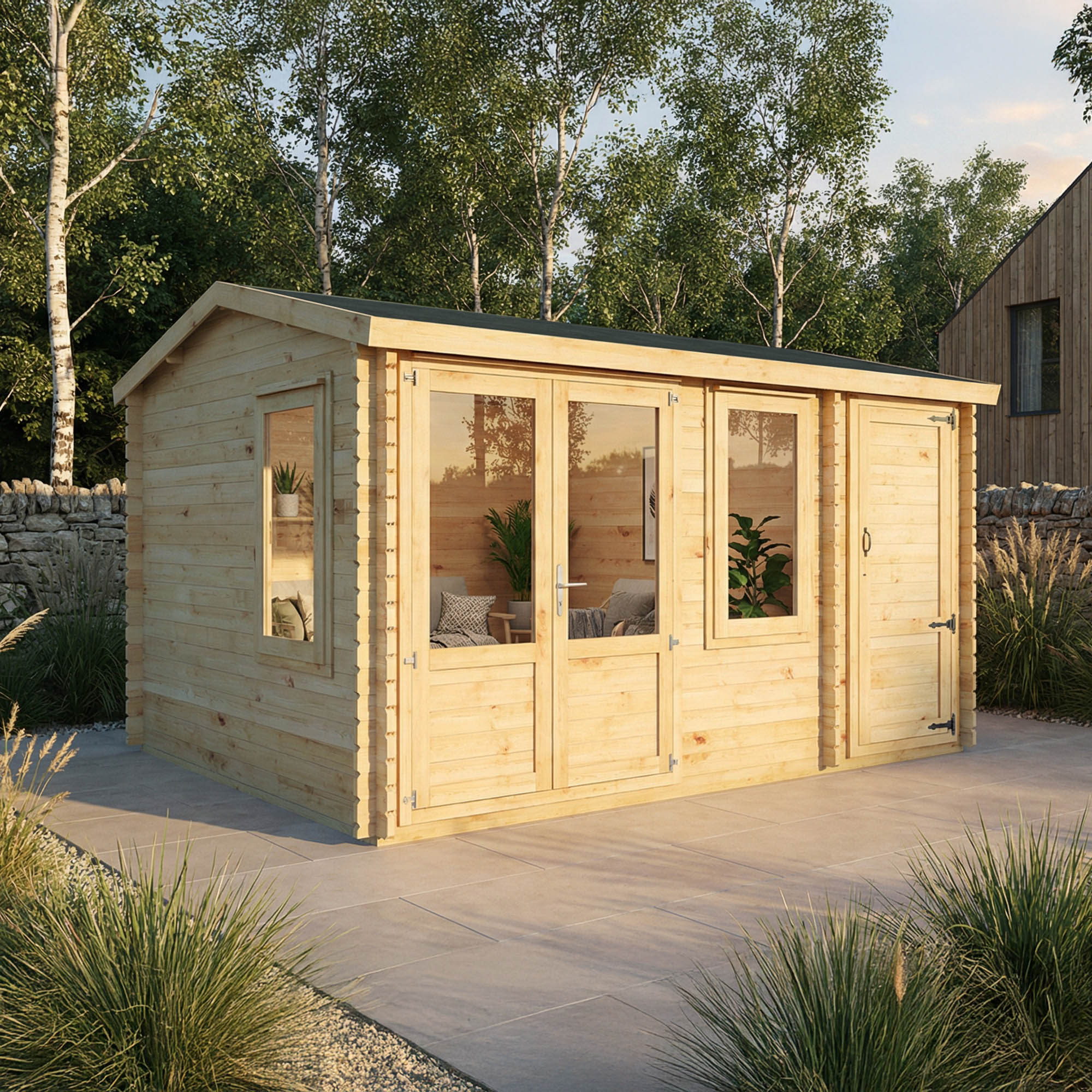 Each of our log cabins is built using high-quality, sustainably sourced Scandinavian spruce, chosen for its durability, stability, and attractive natural grain.