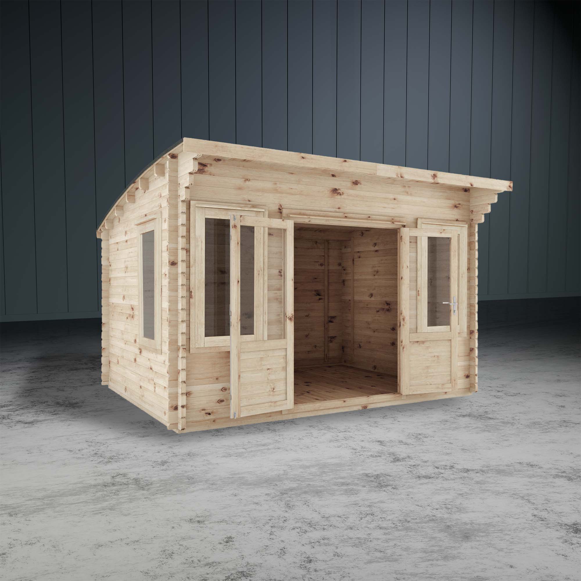 The Tawny Curved Roof Log Cabin combines modern design with a traditional log cabin construction. If you're looking for something striking and contemporary, the Tawny Curved Roof Log Cabin will tick all the boxes.