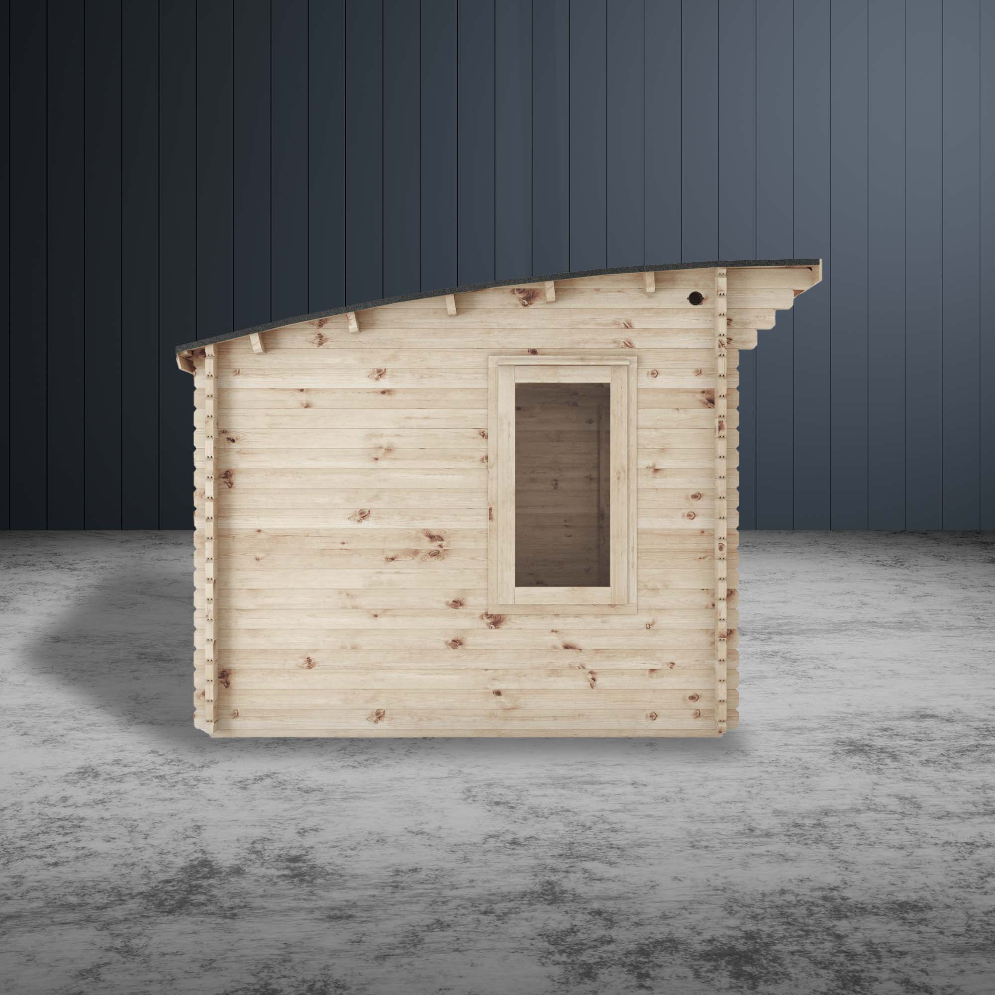 Made of 44mm interlocking log boards, the robust structure will stand the test of time. Creating a secure and tight construction that will prevent water ingress and also help retain heat. An additional vent promotes airflow within the cabin, reducing the risk of moisture inside the building and enhancing overall ventilation.