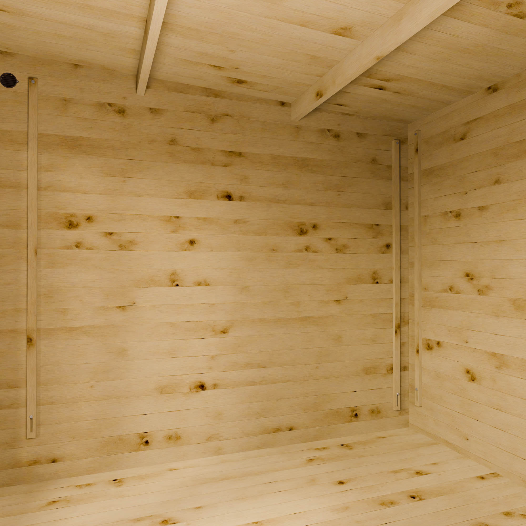 Manufactured from sturdy 16mm tongue and groove boards, the roof and floor interlock to create robust panels, making them ideal for all your furniture. Premium roofing felt is included to safeguard your log cabin from the typical British weather and ensure durability. An additional vent promotes airflow within the cabin, reducing the risk of moisture inside the building and enhancing overall ventilation. Finally, contemporary yet timeless ironmongery provides a stylish finishing touch to both the interior and exterior of your new garden escape.
