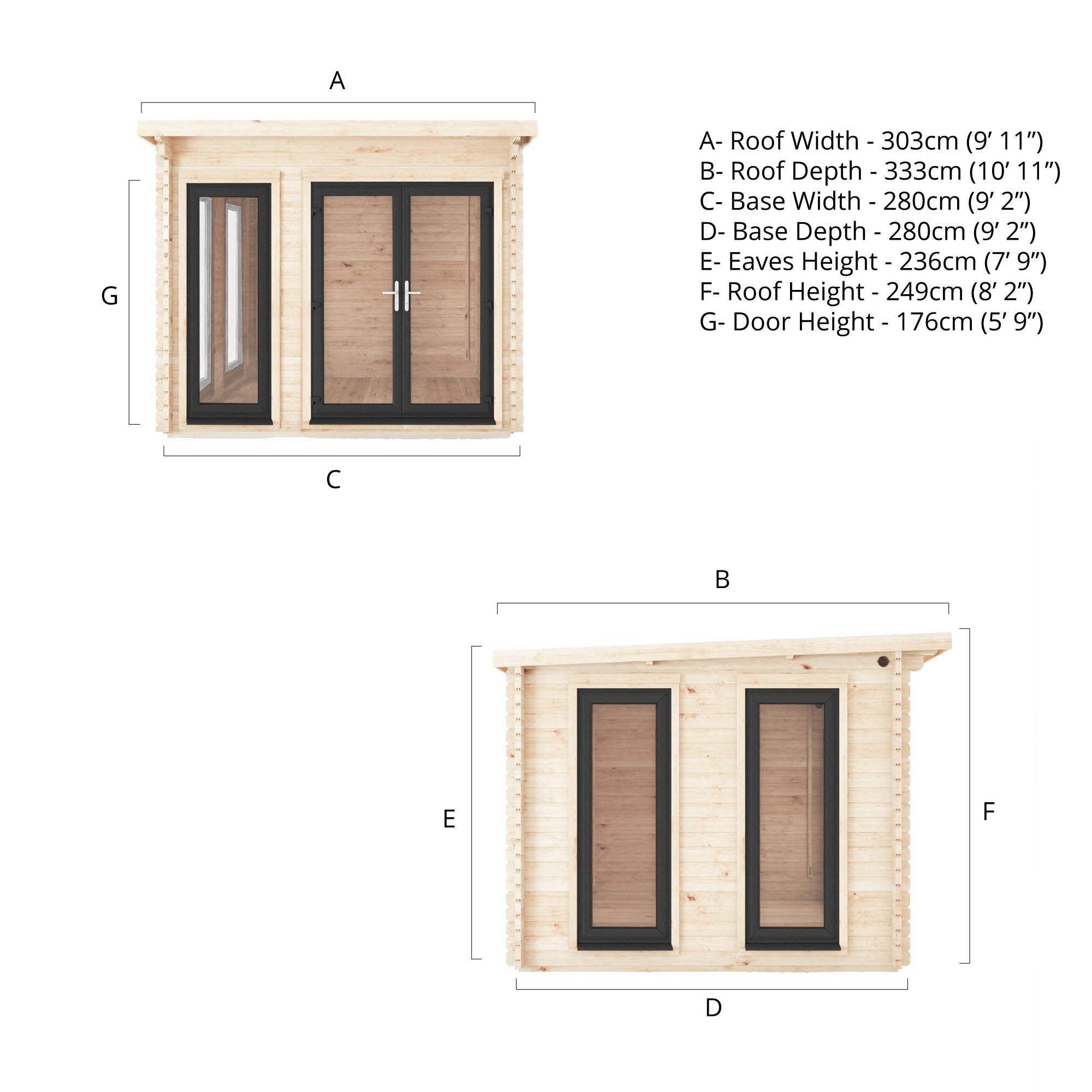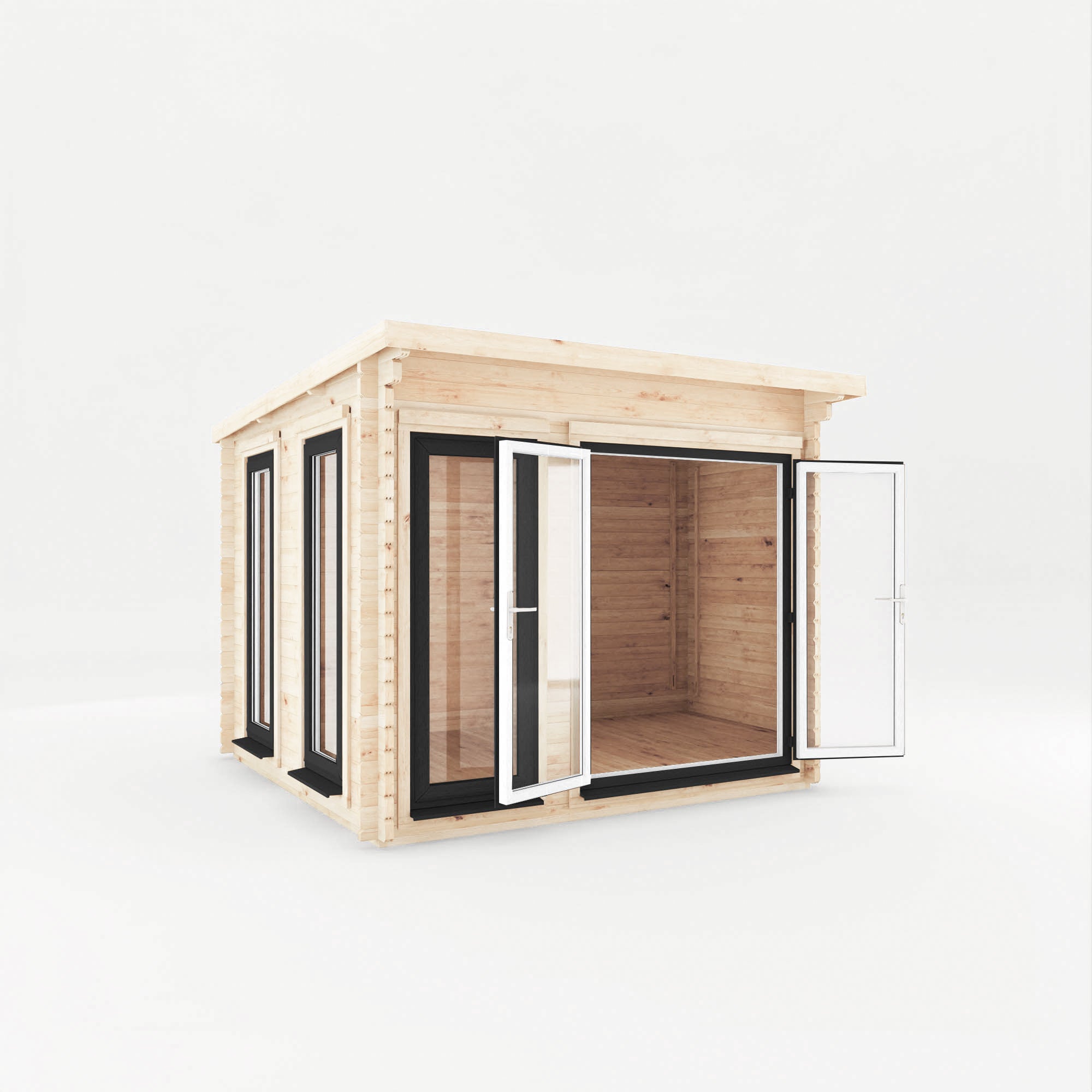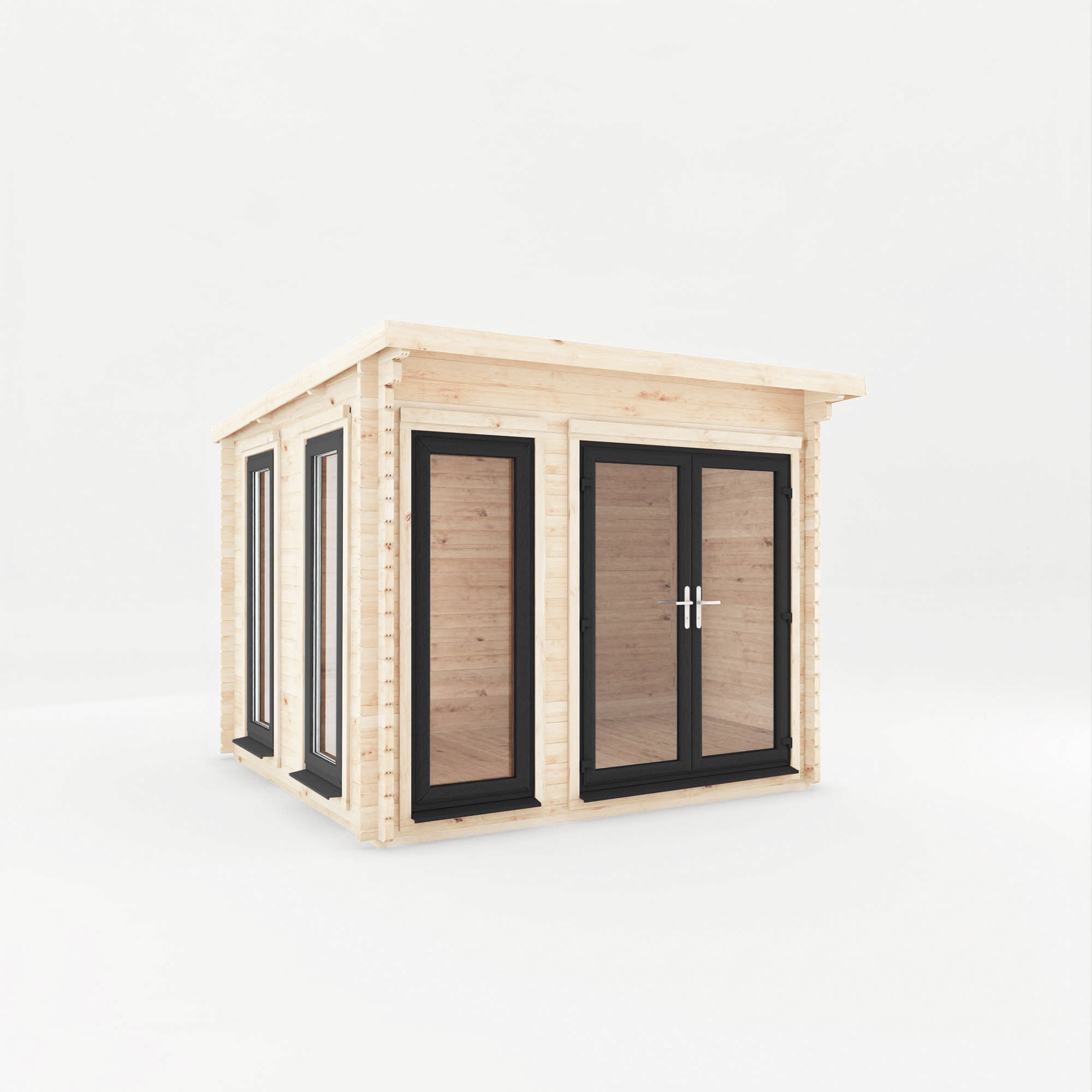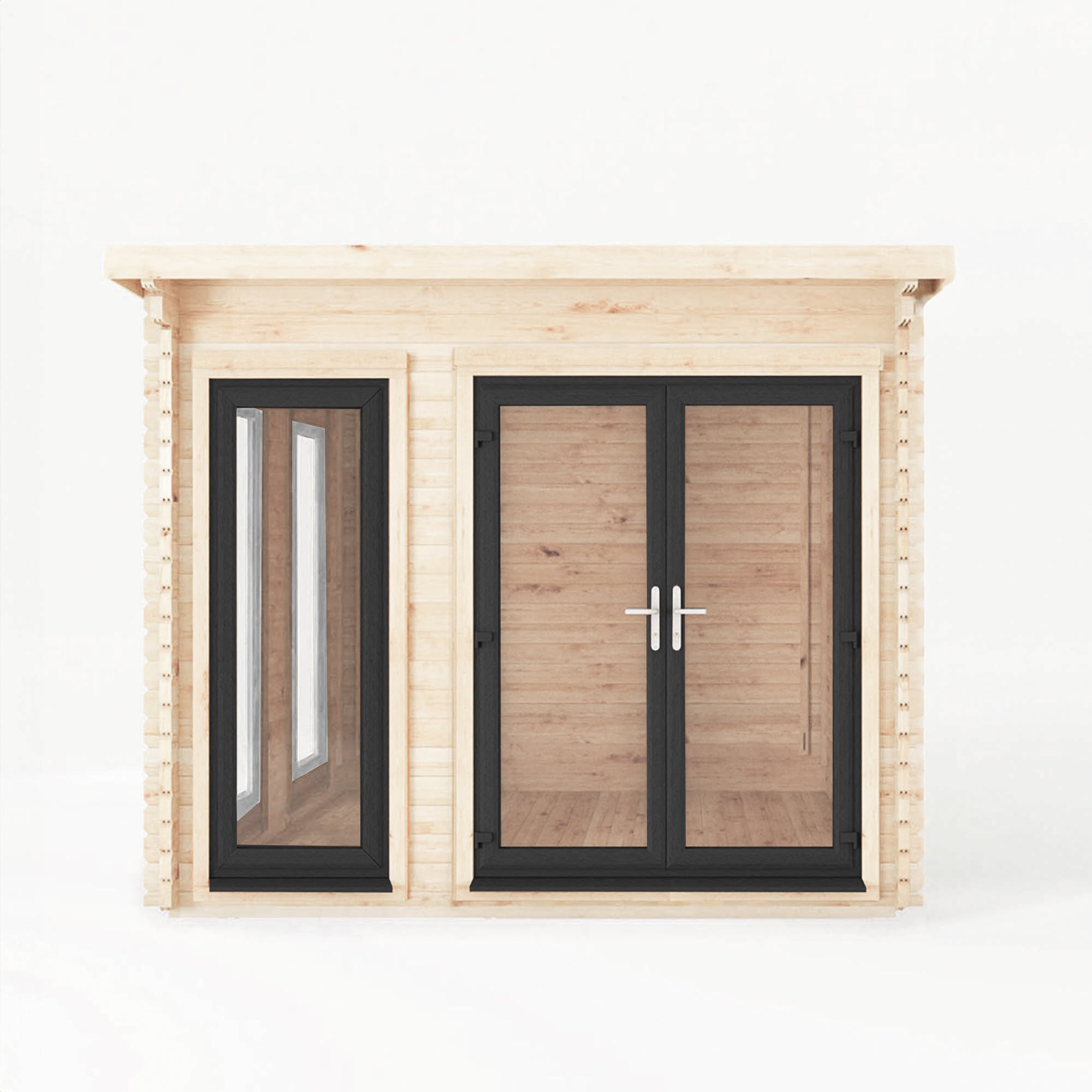 If you fancy upgrading this cabin and taking it to the next level, the Wren log cabin is also available with UPVC doors and windows. Choose from anthracite, oak and white.