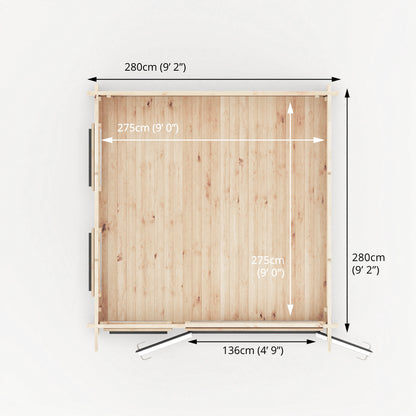 Our Wren log cabin provides three options for log thickness: 28mm, 34mm, or 44mm interlocking boards, catering to your specific needs. Choosing thicker log boards comes with various benefits. Increased wall thickness enhances insulation, making the cabin more adaptable and comfortable year-round by providing better protection from both summer heat and winter cold. Additionally, opting for thicker walls contributes to a quieter interior, offering a peaceful place for both work and relaxation.