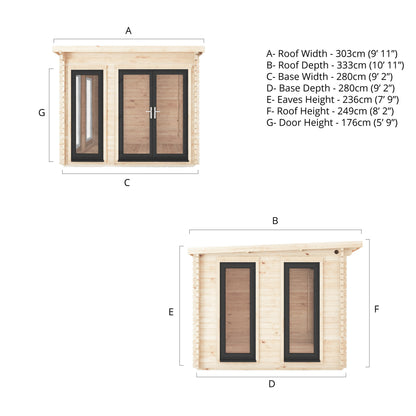 Featuring a pent roof design, the Wren Log Cabin has a modern and streamlined aesthetic. The inclined roof allows the structure to discreetly blend into any garden setting, all while creating a warm and snug interior ambience.