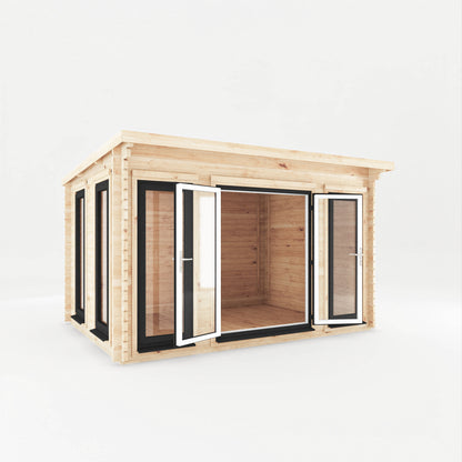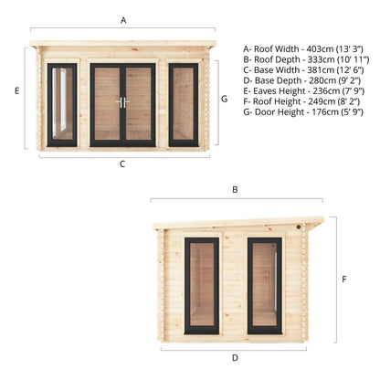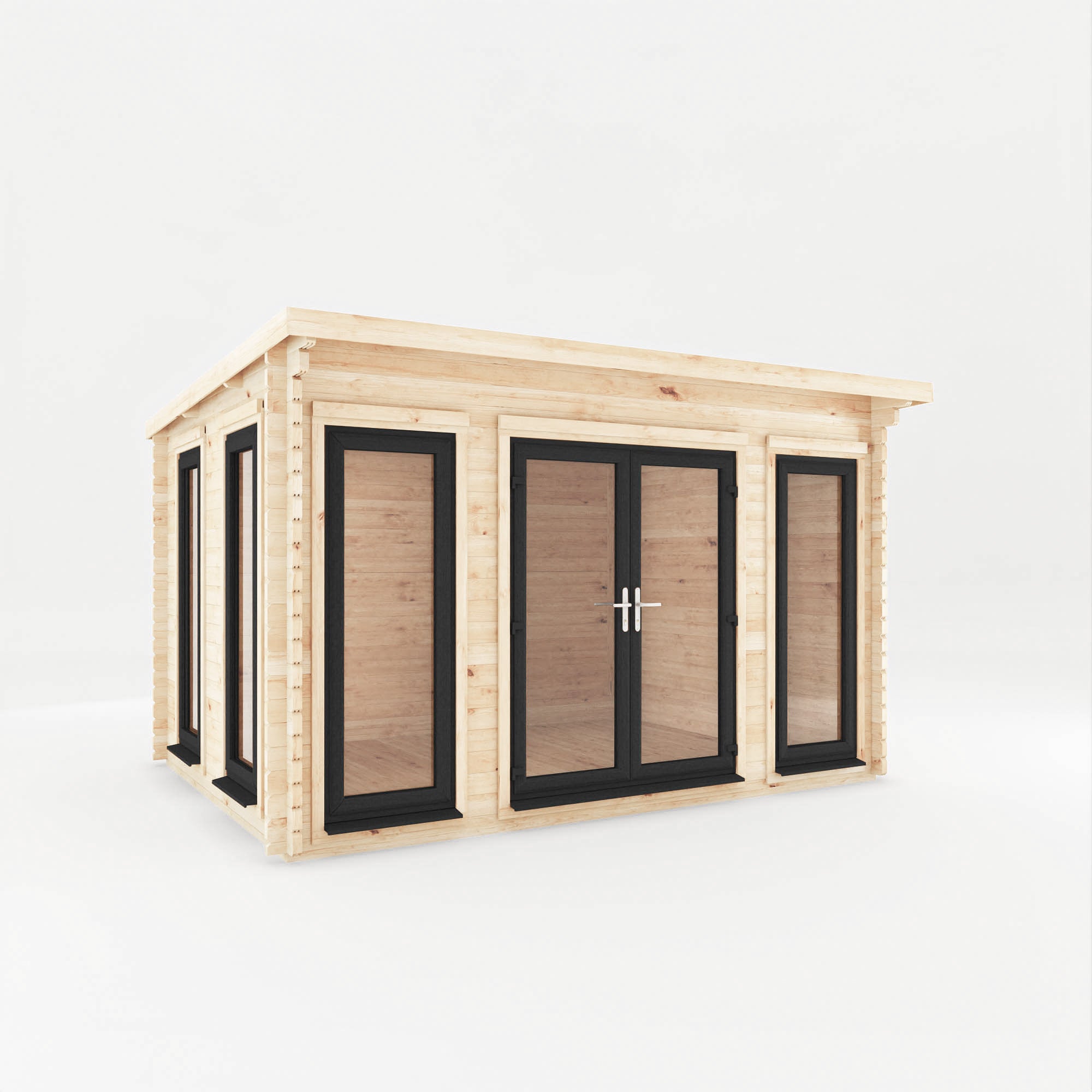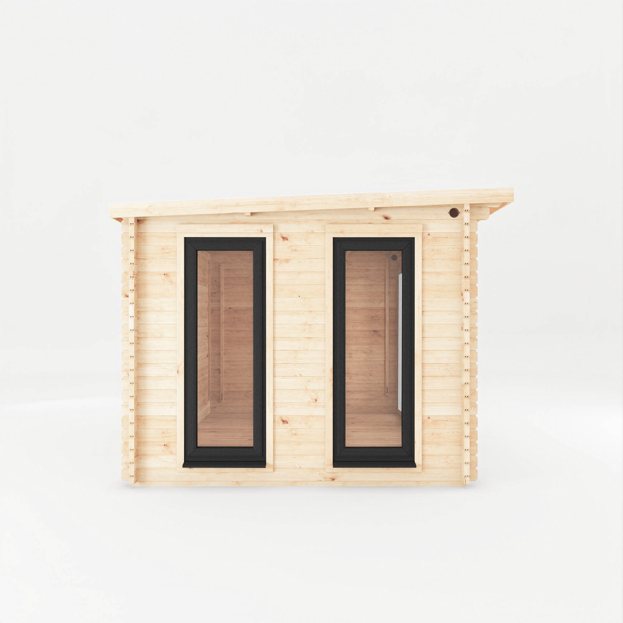 If you fancy upgrading this cabin and taking it to the next level, the Wren log cabin is also available with UPVC doors and windows. Choose from anthracite, oak and white.