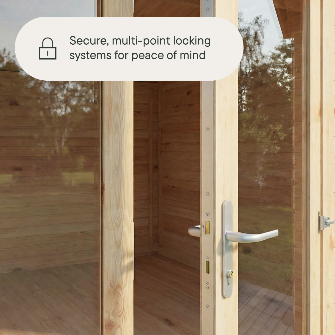 Beyond offering a new place to relax, the added advantage of a functional side shed provides extra storage space without contributing to additional clutter in your home. The walls of the side shed are 19mm thick, coupled with the 12mm thick roof and floor, creating an airtight environment for garden equipment, DIY tools, bikes and children's toys.