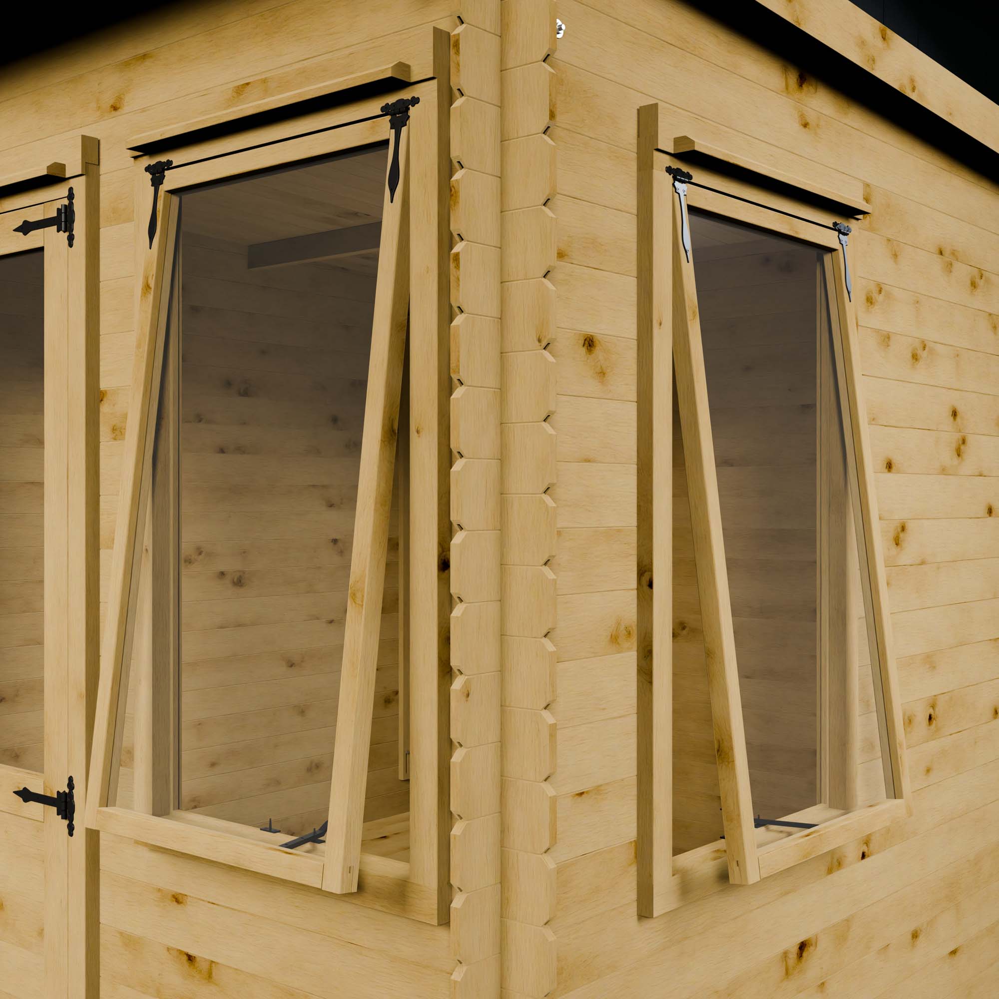 Classic and traditional ironmongery is included with this log cabin as standard. A lock and key are supplied as standard so you can secure your building and belongings when not in use.
