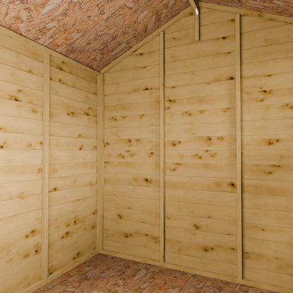 This shed is supplied untreated and will require a coat of high quality timber treatment once installed then annually after that. You can simply add this into your basket as an additional extra and we’ll deliver it alongside your new retreat, so you’re ready to go.
