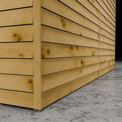 Shiplap cladding consists of multiple boards of timber which create a flush panel. Shiplap cladding features a recess at the top of the individual boards which helps water run-off, offering protection against the elements. Not only is shiplap cladding watertight like overlap cladding, but it also has the added benefit of being airtight, meaning belongings are much less at the risk of draughts and dampness. This means shiplap sheds are an ideal choice if you intend on spending time in your shed, as a workshop for example, or are planning to store items that could not risk coming into contact with any moisture. Another added benefit is its aesthetically pleasing smooth exterior, coupled with smooth interior panels, creating a high standard of finish both on the inside and outside of the building. This gives a more premium feel to your garden.