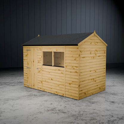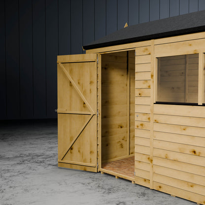 This shed is supplied untreated and will require a coat of high quality timber treatment once installed then annually after that. You can simply add this into your basket as an additional extra and we’ll deliver it alongside your new retreat, so you’re ready to go.