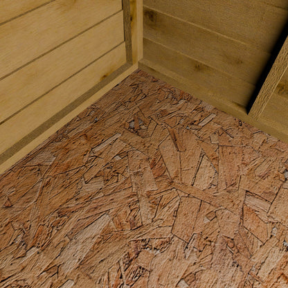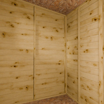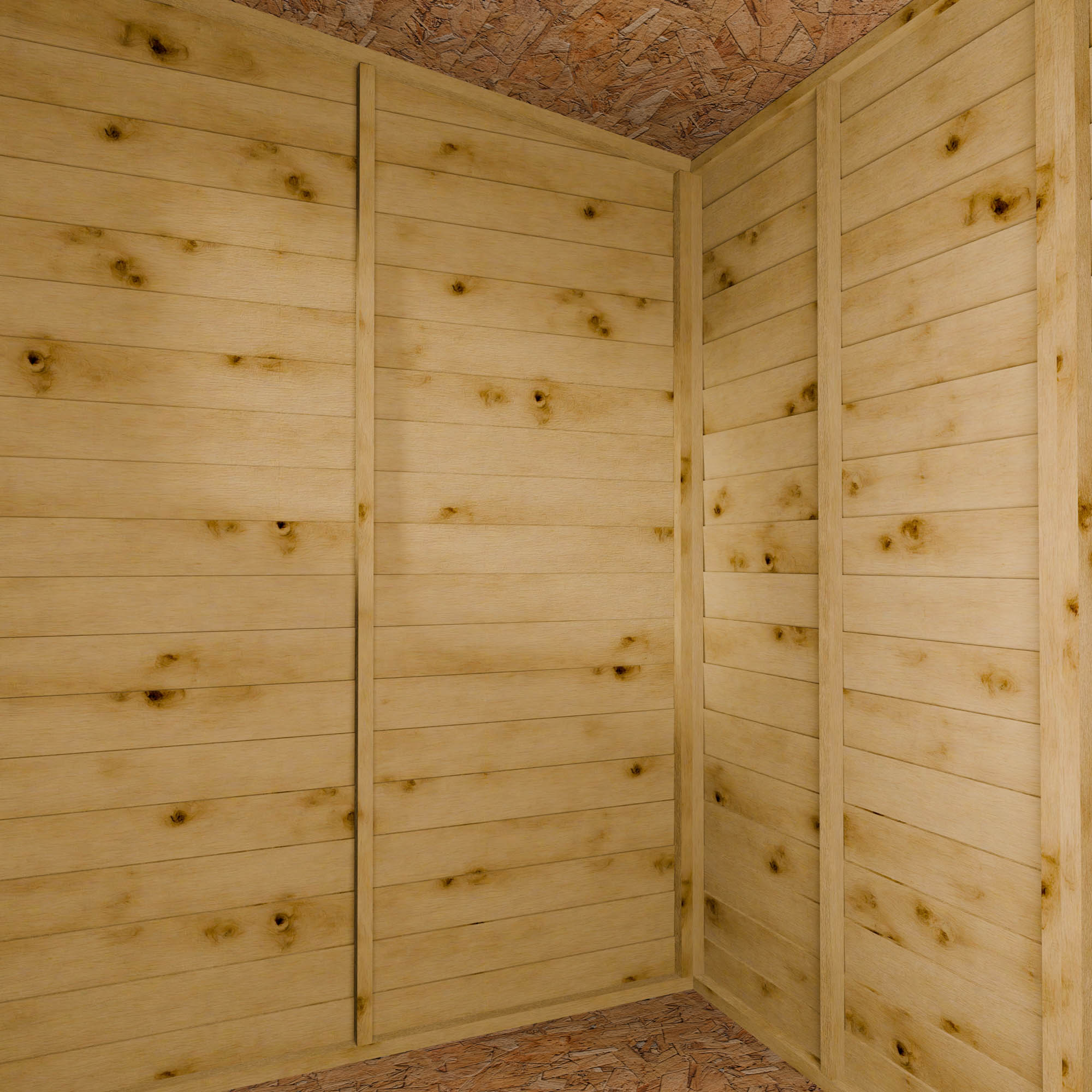 The walls of this shed are constructed using overlapping timber boards that are attached to a strong internal frame, to create durable and robust panels. This building is complete with thick wooden internal framing to support the overlap panelling, creating a rigid, long lasting structure. This shed also comes with oriented strand board (OSB) flooring and roof. This solid sheet board is manufactured from several layers of tightly compared oriented strands, ideal for every day use and general storage whilst being budget friendly.