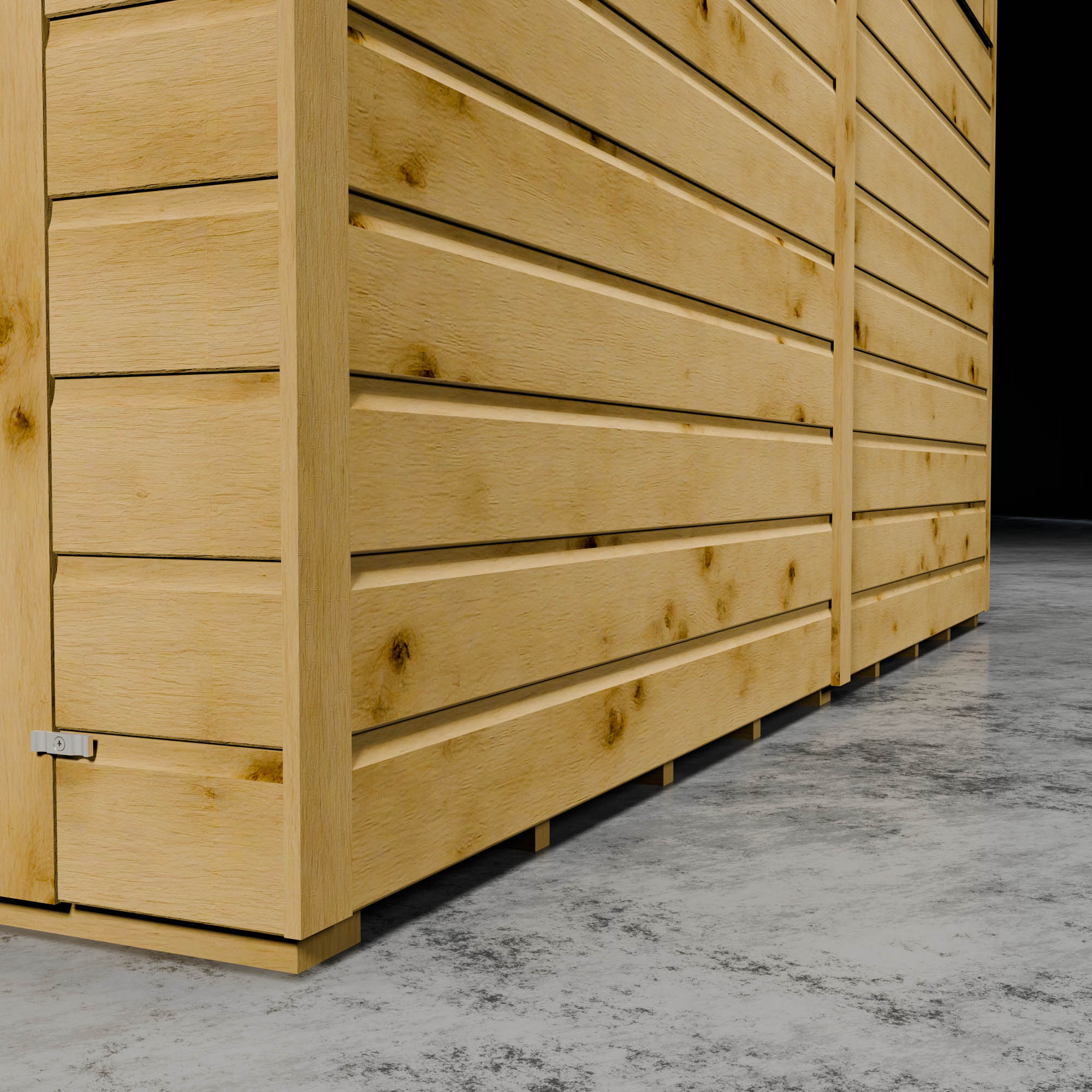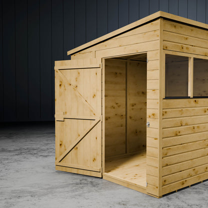 Featuring a contemporary pent roof-line, you can rest knowing the shed's naturally sloped silhouette allows for superior rainwater runoff, ensuring the shed remains dry throughout the British seasons.