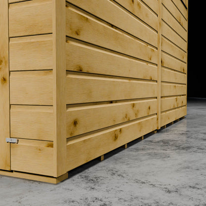 Shiplap cladding consists of multiple boards of timber which create a flush panel. Shiplap cladding features a recess at the top of the individual boards which helps water run-off, offering protection against the elements. Not only is shiplap cladding watertight like overlap cladding, but it also has the added benefit of being airtight, meaning belongings are much less at the risk of draughts and dampness. This means shiplap sheds are an ideal choice if you intend on spending time in your shed, as a workshop for example, or are planning to store items that could not risk coming into contact with any moisture. Another added benefit is its aesthetically pleasing smooth exterior, coupled with smooth interior panels, creating a high standard of finish both on the inside and outside of the building. This gives a more premium feel to your garden.